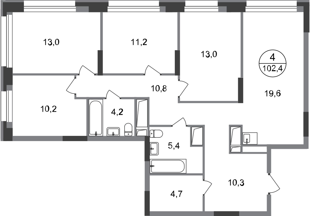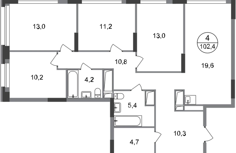 Продается четырехкомнатная квартира без отделки в 7 фазе города-парка "Первый Московский". Общая площадь квартиры - 102,4 кв. м, этаж 14 из 20. Срок сдачи - 1 квартал 2027 года. Тип дома - монолитный. АКЦИЯ «ПОЙМАЙ МАЙ» : - выгодные условия на бронирование квартиры - бесплатная регистрация договора - участие в розыгрыше с гарантированными подарками *срок проведения акции с 26.04.25 г. по 12.05.25 г. Информация об организаторе акции, правилах ее проведения, количестве призов, сроках месте и порядке их получения уточняйте в офисе продаж. Новый корпус состоит из 3х секций: - 1 и 2 секции с отделкой White Box с возможностью приобретения чистовой отделки за дополнительную плату - 3 секция без отделки Город-парк "Первый Московский" расположен всего в 7 км по Киевскому шоссе (Новая Москва). Из города-парка прямой выезд на Киевское шоссе и трассу Солнцево-Бутово-Варшавское шоссе. ТРАНСПОРТНАЯ ДОСТУПНОСТЬ: - 5 мин. на личном автомобиле или 10 мин. на автобусе №189 и №147 до станции метро «Филатов Луг» - 25 мин. пешком до станции метро «Филатов Луг» ИНФРАСТРУКТУРА: Около 7 фазы запланировано строительство детского сада, школы, 2 многоуровневых паркинга. Также на территории проекта есть все необходимые объекты действующей социальной и бытовой инфраструктуры: 8 детских садов, 5 школ, тц, магазины, паркинги, аптеки и др. БЛАГОУСТРОЙСТВО: - Дворы без машин - Игровые зоны для детей, зоны для занятия спортом, зоны для отдыха с навесами/качелями - Детские площадки разделены по возрастным группам - Пешеходный и вело-маршрут с двуполостной велодорожкой 2,5 м. в ширину - Озеленение с растениями всесезонного цветения ОСОБЕННОСТИ АРХИТЕКТУРЫ: В каждой секции 3 корпуса предусмотрены: - колясочные во входных группах - кладовые помещения с -1 по 20 этажи - коммерческие помещения на 1 этажах - по 4 лифта: 2 пассажирских, 2 грузовых - видеонаблюдение установленное в холлах первых этажей, у подъездов и прилегающей территории АВТОРСКИЙ ДИЗАЙН: Входные группы выполнены по авторскому дизайну, оснащены системой «тёплый пол». В каждой входной группе будет располагаться комфортабельная зона ожидания с мягким диваном, акцентными пуфами и столиком.О застройщике