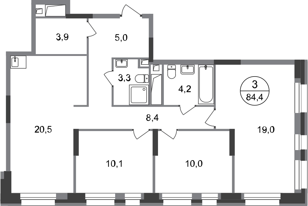 Продается трехкомнатная квартира без отделки в 7 фазе города-парка "Первый Московский". Общая площадь квартиры - 84,4 кв. м, этаж 16 из 20. Срок сдачи - 1 квартал 2027 года. Тип дома - монолитный. Цена указана при 100% оплате. Новый корпус состоит из 3 секций: - 1 и 2 секции — с отделкой White Box с возможностью приобретения чистовой отделки за дополнительную плату - 3 секция — без отделки Город-парк "Первый Московский" расположен всего в 7 км по Киевскому шоссе (Новая Москва). Из города-парка прямой выезд на Киевское шоссе и трассу Солнцево-Бутово-Варшавское шоссе. ТРАНСПОРТНАЯ ДОСТУПНОСТЬ: - 5 мин. на личном автомобиле или 10 мин. на автобусе №189 и №147 до станции метро «Филатов Луг» - 25 мин. пешком до станции метро «Филатов Луг» ИНФРАСТРУКТУРА: Около 7 фазы запланировано строительство детского сада, школы, 2 многоуровневых паркингов. Также на территории проекта есть все необходимые объекты действующей социальной и бытовой инфраструктуры: 8 детских садов, 5 школ, ТЦ, магазины, паркинги, аптеки и др. БЛАГОУСТРОЙСТВО: - Дворы без машин - Игровые зоны для детей, зоны для занятия спортом, зоны для отдыха с навесами/качелями - Детские площадки разделены по возрастным группам - Пешеходный и веломаршрут с двухполосной велодорожкой 2,5 м в ширину - Озеленение с растениями всесезонного цветения ОСОБЕННОСТИ АРХИТЕКТУРЫ: В каждой секции 3 корпуса предусмотрены: - колясочные во входных группах - кладовые помещения с -1 по 20 этажи - коммерческие помещения на 1 этажах - по 4 лифта: 2 пассажирских, 2 грузовых - видеонаблюдение, установленное в холлах первых этажей, у подъездов и на прилегающей территории АВТОРСКИЙ ДИЗАЙН: Входные группы выполнены по авторскому дизайну, оснащены системой «тёплый пол». В каждой входной группе будет располагаться комфортабельная зона ожидания с мягким диваном, акцентными пуфами и столиком.О застройщике