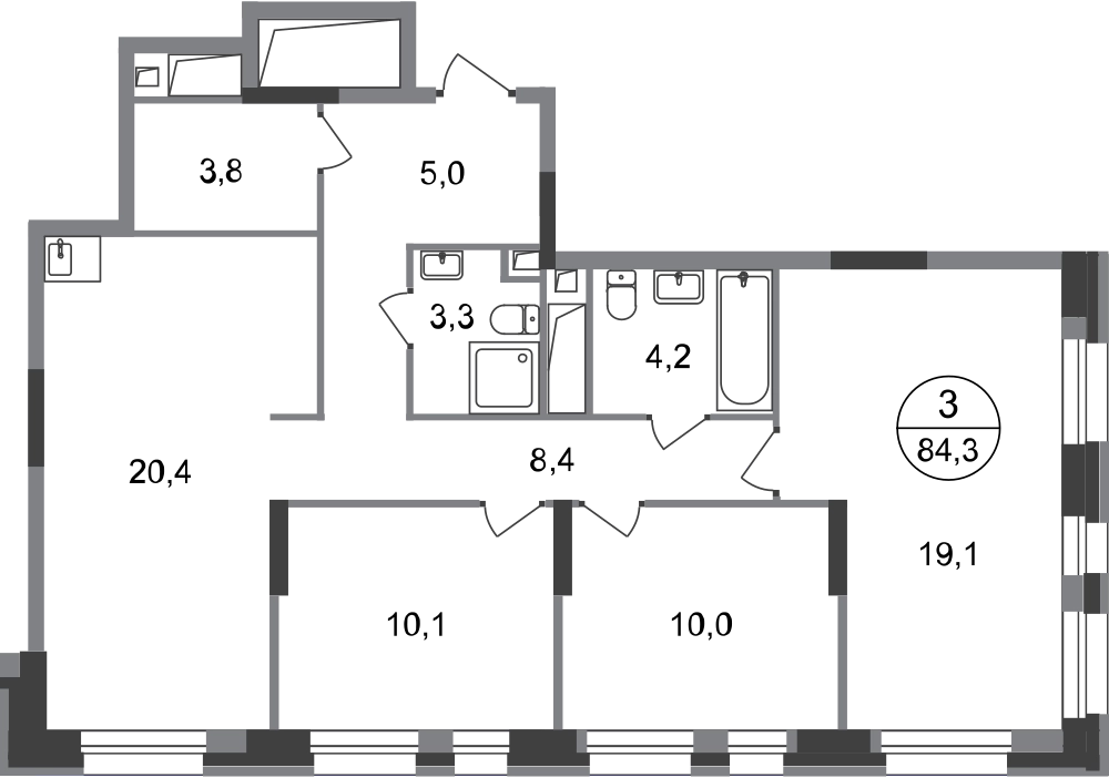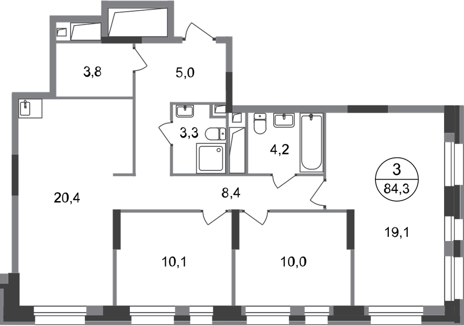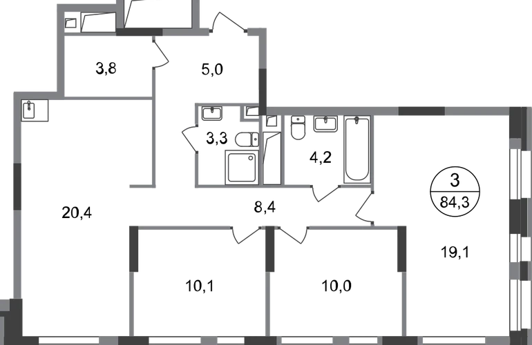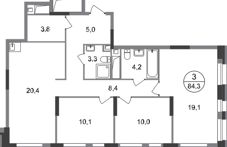 Продается трехкомнатная квартира без отделки в 7 фазе города-парка "Первый Московский". Общая площадь квартиры - 84,3 кв. м, этаж 20 из 20. Срок сдачи - 1 квартал 2027 года. Тип дома - монолитный. Цена указана при 100% оплате. Новый корпус состоит из 3 секций: - 1 и 2 секции — с отделкой White Box с возможностью приобретения чистовой отделки за дополнительную плату - 3 секция — без отделки Город-парк "Первый Московский" расположен всего в 7 км по Киевскому шоссе (Новая Москва). Из города-парка прямой выезд на Киевское шоссе и трассу Солнцево-Бутово-Варшавское шоссе. ТРАНСПОРТНАЯ ДОСТУПНОСТЬ: - 5 мин. на личном автомобиле или 10 мин. на автобусе №189 и №147 до станции метро «Филатов Луг» - 25 мин. пешком до станции метро «Филатов Луг» ИНФРАСТРУКТУРА: Около 7 фазы запланировано строительство детского сада, школы, 2 многоуровневых паркингов. Также на территории проекта есть все необходимые объекты действующей социальной и бытовой инфраструктуры: 8 детских садов, 5 школ, ТЦ, магазины, паркинги, аптеки и др. БЛАГОУСТРОЙСТВО: - Дворы без машин - Игровые зоны для детей, зоны для занятия спортом, зоны для отдыха с навесами/качелями - Детские площадки разделены по возрастным группам - Пешеходный и веломаршрут с двухполосной велодорожкой 2,5 м в ширину - Озеленение с растениями всесезонного цветения ОСОБЕННОСТИ АРХИТЕКТУРЫ: В каждой секции 3 корпуса предусмотрены: - колясочные во входных группах - кладовые помещения с -1 по 20 этажи - коммерческие помещения на 1 этажах - по 4 лифта: 2 пассажирских, 2 грузовых - видеонаблюдение, установленное в холлах первых этажей, у подъездов и на прилегающей территории АВТОРСКИЙ ДИЗАЙН: Входные группы выполнены по авторскому дизайну, оснащены системой «тёплый пол». В каждой входной группе будет располагаться комфортабельная зона ожидания с мягким диваном, акцентными пуфами и столиком.О застройщике