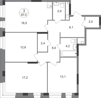 Продается трехкомнатная квартира с отделкой в 9 фазе города-парка «Первый Московский». Общая площадь квартиры - 87 кв. м, этаж 2 из 19. Срок сдачи - 2 квартал 2027 года. Тип дома - монолитный. Цена указана при 100% оплате. Новый корпус состоит из 3 секций: Все квартиры с отделкой White Box с возможностью дополнительного выбора дизайнерской отделки: Classic или Smart+ Город-парк «Первый Московский» расположен всего в 7 км по Киевскому шоссе (Новая Москва). Из города-парка прямой выезд на Киевское шоссе и трассу Солнцево-Бутово-Варшавское шоссе. ТРАНСПОРТНАЯ ДОСТУПНОСТЬ: - 5 мин. на личном автомобиле или 10 мин. на автобусе №189, 147, 193 до станции метро «Филатов Луг» - 5 мин. на личном автомобиле или 12 мин. на автобусе №863 до станции метро «Саларьево» - 6 мин. на личном автомобиле или 15 мин. на автобусе №333 до станции метро «Рассказовка» РАЗВИТАЯ ИНФРАСТРУКТУРА В ОКРУЖЕНИИ: - общеобразовательная школа №2120 (корпуса д1, д7, ш1-ш5) - детский сад №2120 (корпуса д2, д9) - школа искусств - городская больница, детская поликлиника, филиал №5 - подстанция скорой помощи №58 и пожарно-спасательный центр №313 - отдел полиции, отдел ГИБДД - торговые центры «Столица» и «Новомосковский» - стадион, каток, бассейн - кафе, продуктовые магазины, аптеки, фитнес-центры, салоны красоты и пр. БЛАГОУСТРОЙСТВО: - дворы без машин - разнообразные детские площадки и развивающие комплексы - детские площадки разделены по возрастным группам - максимальная близость корпуса к парку «Филатов луг» - озеленение территории с учетом зонирования, островками для отдыха ОСОБЕННОСТИ АРХИТЕКТУРЫ: - безбарьерные входные группы - велопарковка на -1 этаже - колясочные в каждой входной группе - коммерческие помещения на 1 этаже в трех секциях - кладовые помещения расположены на жилых этажах и на -1 этаже - в каждой секции корпуса — 4 лифта: 2 пассажирских, 2 грузовых - видеонаблюдение установленное в холлах первых этажей, у подъездов и на прилегающей территории АВТОРСКИЙ ДИЗАЙН: Входные группы выполнены по авторскому дизайну, оснащены системой «тёплый пол». В каждой входной группе будет располагаться комфортабельная зона ожидания, почтовые ящики с ячейкой для спама, колясочная, акцентные пуфы и столик.О застройщике