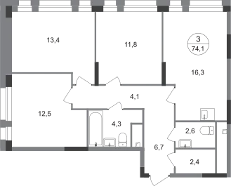Продается трехкомнатная квартира с отделкой в 9 фазе города-парка «Первый Московский». Общая площадь квартиры - 74,1 кв. м, этаж 2 из 19. Срок сдачи - 2 квартал 2027 года. Тип дома - монолитный. Цена указана при 100% оплате. Новый корпус состоит из 3 секций: Все квартиры с отделкой White Box с возможностью дополнительного выбора дизайнерской отделки: Classic или Smart+ Город-парк «Первый Московский» расположен всего в 7 км по Киевскому шоссе (Новая Москва). Из города-парка прямой выезд на Киевское шоссе и трассу Солнцево-Бутово-Варшавское шоссе. ТРАНСПОРТНАЯ ДОСТУПНОСТЬ: - 5 мин. на личном автомобиле или 10 мин. на автобусе №189, 147, 193 до станции метро «Филатов Луг» - 5 мин. на личном автомобиле или 12 мин. на автобусе №863 до станции метро «Саларьево» - 6 мин. на личном автомобиле или 15 мин. на автобусе №333 до станции метро «Рассказовка» РАЗВИТАЯ ИНФРАСТРУКТУРА В ОКРУЖЕНИИ: - общеобразовательная школа №2120 (корпуса д1, д7, ш1-ш5) - детский сад №2120 (корпуса д2, д9) - школа искусств - городская больница, детская поликлиника, филиал №5 - подстанция скорой помощи №58 и пожарно-спасательный центр №313 - отдел полиции, отдел ГИБДД - торговые центры «Столица» и «Новомосковский» - стадион, каток, бассейн - кафе, продуктовые магазины, аптеки, фитнес-центры, салоны красоты и пр. БЛАГОУСТРОЙСТВО: - дворы без машин - разнообразные детские площадки и развивающие комплексы - детские площадки разделены по возрастным группам - максимальная близость корпуса к парку «Филатов луг» - озеленение территории с учетом зонирования, островками для отдыха ОСОБЕННОСТИ АРХИТЕКТУРЫ: - безбарьерные входные группы - велопарковка на -1 этаже - колясочные в каждой входной группе - коммерческие помещения на 1 этаже в трех секциях - кладовые помещения расположены на жилых этажах и на -1 этаже - в каждой секции корпуса — 4 лифта: 2 пассажирских, 2 грузовых - видеонаблюдение установленное в холлах первых этажей, у подъездов и на прилегающей территории АВТОРСКИЙ ДИЗАЙН: Входные группы выполнены по авторскому дизайну, оснащены системой «тёплый пол». В каждой входной группе будет располагаться комфортабельная зона ожидания, почтовые ящики с ячейкой для спама, колясочная, акцентные пуфы и столик.О застройщике