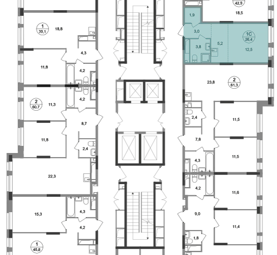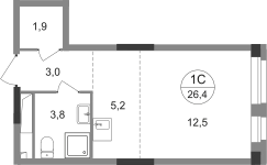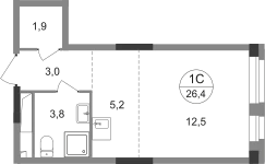 Студия, 26,4 кв.м., 13/19эт.