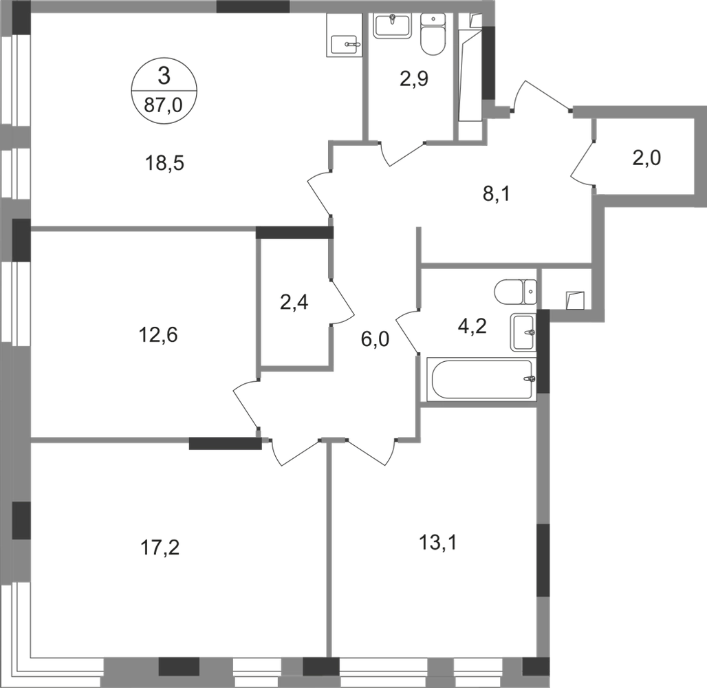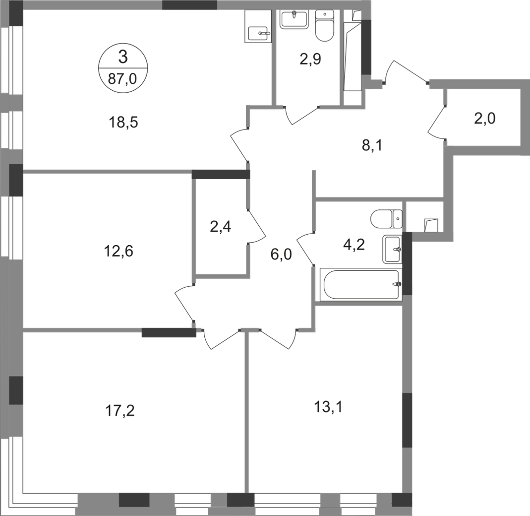 Продается трехкомнатная квартира с отделкой в 9 фазе города-парка «Первый Московский». Общая площадь квартиры - 87 кв. м, этаж 16 из 19. Срок сдачи - 2 квартал 2027 года. Тип дома - монолитный. Цена указана при 100% оплате. Новый корпус состоит из 3 секций: Все квартиры с отделкой White Box с возможностью дополнительного выбора дизайнерской отделки: Classic или Smart+ Город-парк «Первый Московский» расположен всего в 7 км по Киевскому шоссе (Новая Москва). Из города-парка прямой выезд на Киевское шоссе и трассу Солнцево-Бутово-Варшавское шоссе. ТРАНСПОРТНАЯ ДОСТУПНОСТЬ: - 5 мин. на личном автомобиле или 10 мин. на автобусе №189, 147, 193 до станции метро «Филатов Луг» - 5 мин. на личном автомобиле или 12 мин. на автобусе №863 до станции метро «Саларьево» - 6 мин. на личном автомобиле или 15 мин. на автобусе №333 до станции метро «Рассказовка» РАЗВИТАЯ ИНФРАСТРУКТУРА В ОКРУЖЕНИИ: - общеобразовательная школа №2120 (корпуса д1, д7, ш1-ш5) - детский сад №2120 (корпуса д2, д9) - школа искусств - городская больница, детская поликлиника, филиал №5 - подстанция скорой помощи №58 и пожарно-спасательный центр №313 - отдел полиции, отдел ГИБДД - торговые центры «Столица» и «Новомосковский» - стадион, каток, бассейн - кафе, продуктовые магазины, аптеки, фитнес-центры, салоны красоты и пр. БЛАГОУСТРОЙСТВО: - дворы без машин - разнообразные детские площадки и развивающие комплексы - детские площадки разделены по возрастным группам - максимальная близость корпуса к парку «Филатов луг» - озеленение территории с учетом зонирования, островками для отдыха ОСОБЕННОСТИ АРХИТЕКТУРЫ: - безбарьерные входные группы - велопарковка на -1 этаже - колясочные в каждой входной группе - коммерческие помещения на 1 этаже в трех секциях - кладовые помещения расположены на жилых этажах и на -1 этаже - в каждой секции корпуса — 4 лифта: 2 пассажирских, 2 грузовых - видеонаблюдение установленное в холлах первых этажей, у подъездов и на прилегающей территории АВТОРСКИЙ ДИЗАЙН: Входные группы выполнены по авторскому дизайну, оснащены системой «тёплый пол». В каждой входной группе будет располагаться комфортабельная зона ожидания, почтовые ящики с ячейкой для спама, колясочная, акцентные пуфы и столик.О застройщике