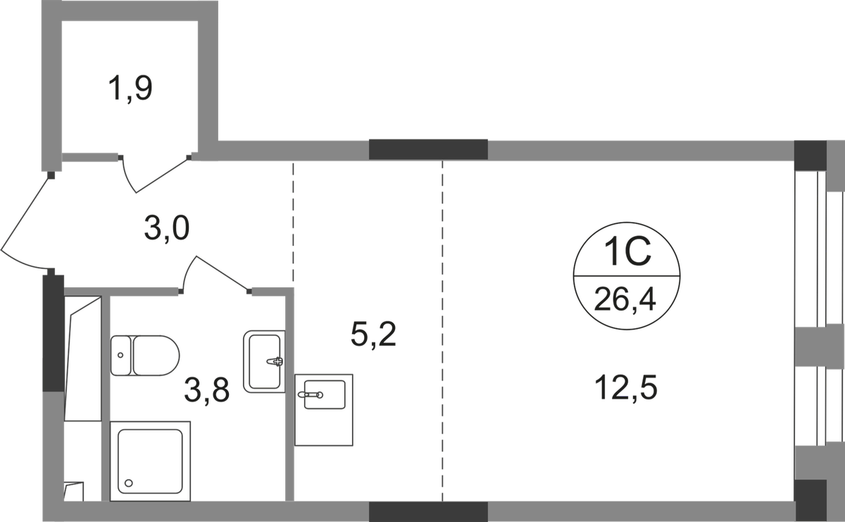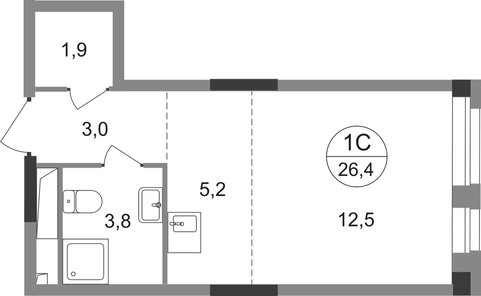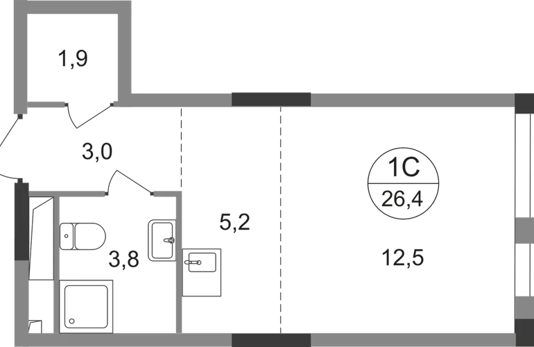 Продается квартира-студия с отделкой в 9 фазе города-парка «Первый Московский». Общая площадь квартиры - 26,4 кв. м, этаж 13 из 19. Срок сдачи - 2 квартал 2027 года. Тип дома - монолитный. Цена указана при 100% оплате. Новый корпус состоит из 3 секций: Все квартиры с отделкой White Box с возможностью дополнительного выбора дизайнерской отделки: Classic или Smart+ Город-парк «Первый Московский» расположен всего в 7 км по Киевскому шоссе (Новая Москва). Из города-парка прямой выезд на Киевское шоссе и трассу Солнцево-Бутово-Варшавское шоссе. ТРАНСПОРТНАЯ ДОСТУПНОСТЬ: - 5 мин. на личном автомобиле или 10 мин. на автобусе №189, 147, 193 до станции метро «Филатов Луг» - 5 мин. на личном автомобиле или 12 мин. на автобусе №863 до станции метро «Саларьево» - 6 мин. на личном автомобиле или 15 мин. на автобусе №333 до станции метро «Рассказовка» РАЗВИТАЯ ИНФРАСТРУКТУРА В ОКРУЖЕНИИ: - общеобразовательная школа №2120 (корпуса д1, д7, ш1-ш5) - детский сад №2120 (корпуса д2, д9) - школа искусств - городская больница, детская поликлиника, филиал №5 - подстанция скорой помощи №58 и пожарно-спасательный центр №313 - отдел полиции, отдел ГИБДД - торговые центры «Столица» и «Новомосковский» - стадион, каток, бассейн - кафе, продуктовые магазины, аптеки, фитнес-центры, салоны красоты и пр. БЛАГОУСТРОЙСТВО: - дворы без машин - разнообразные детские площадки и развивающие комплексы - детские площадки разделены по возрастным группам - максимальная близость корпуса к парку «Филатов луг» - озеленение территории с учетом зонирования, островками для отдыха ОСОБЕННОСТИ АРХИТЕКТУРЫ: - безбарьерные входные группы - велопарковка на -1 этаже - колясочные в каждой входной группе - коммерческие помещения на 1 этаже в трех секциях - кладовые помещения расположены на жилых этажах и на -1 этаже - в каждой секции корпуса — 4 лифта: 2 пассажирских, 2 грузовых - видеонаблюдение установленное в холлах первых этажей, у подъездов и на прилегающей территории АВТОРСКИЙ ДИЗАЙН: Входные группы выполнены по авторскому дизайну, оснащены системой «тёплый пол». В каждой входной группе будет располагаться комфортабельная зона ожидания, почтовые ящики с ячейкой для спама, колясочная, акцентные пуфы и столик.О застройщике