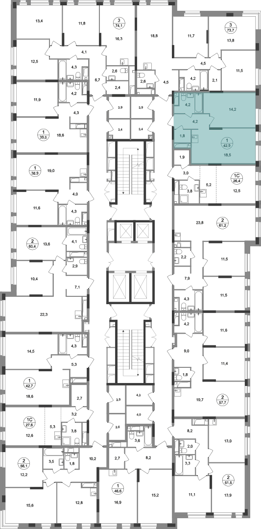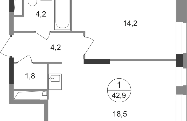 1-ком, 42,9 кв.м., 17/19эт.