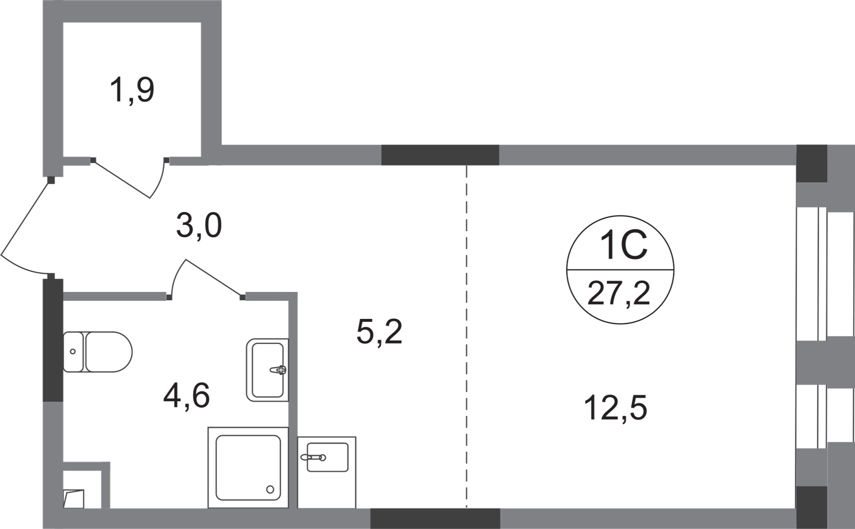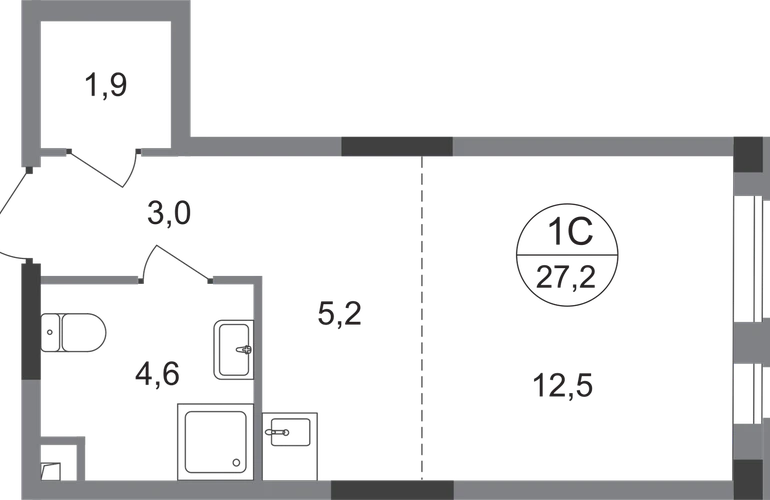 Продается квартира-студия без отделки в 9 фазе города-парка «Первый Московский». Общая площадь квартиры - 27,2 кв. м, этаж 1 из 19. Срок сдачи - 2 квартал 2027 года. Тип дома - монолитный. Цена указана при 100% оплате. Новый корпус состоит из 3 секций: Все квартиры с отделкой White Box с возможностью дополнительного выбора дизайнерской отделки: Classic или Smart+ Город-парк «Первый Московский» расположен всего в 7 км по Киевскому шоссе (Новая Москва). Из города-парка прямой выезд на Киевское шоссе и трассу Солнцево-Бутово-Варшавское шоссе. ТРАНСПОРТНАЯ ДОСТУПНОСТЬ: - 5 мин. на личном автомобиле или 10 мин. на автобусе №189, 147, 193 до станции метро «Филатов Луг» - 5 мин. на личном автомобиле или 12 мин. на автобусе №863 до станции метро «Саларьево» - 6 мин. на личном автомобиле или 15 мин. на автобусе №333 до станции метро «Рассказовка» РАЗВИТАЯ ИНФРАСТРУКТУРА В ОКРУЖЕНИИ: - общеобразовательная школа №2120 (корпуса д1, д7, ш1-ш5) - детский сад №2120 (корпуса д2, д9) - школа искусств - городская больница, детская поликлиника, филиал №5 - подстанция скорой помощи №58 и пожарно-спасательный центр №313 - отдел полиции, отдел ГИБДД - торговые центры «Столица» и «Новомосковский» - стадион, каток, бассейн - кафе, продуктовые магазины, аптеки, фитнес-центры, салоны красоты и пр. БЛАГОУСТРОЙСТВО: - дворы без машин - разнообразные детские площадки и развивающие комплексы - детские площадки разделены по возрастным группам - максимальная близость корпуса к парку «Филатов луг» - озеленение территории с учетом зонирования, островками для отдыха ОСОБЕННОСТИ АРХИТЕКТУРЫ: - безбарьерные входные группы - велопарковка на -1 этаже - колясочные в каждой входной группе - коммерческие помещения на 1 этаже в трех секциях - кладовые помещения расположены на жилых этажах и на -1 этаже - в каждой секции корпуса — 4 лифта: 2 пассажирских, 2 грузовых - видеонаблюдение установленное в холлах первых этажей, у подъездов и на прилегающей территории АВТОРСКИЙ ДИЗАЙН: Входные группы выполнены по авторскому дизайну, оснащены системой «тёплый пол». В каждой входной группе будет располагаться комфортабельная зона ожидания, почтовые ящики с ячейкой для спама, колясочная, акцентные пуфы и столик.О застройщике