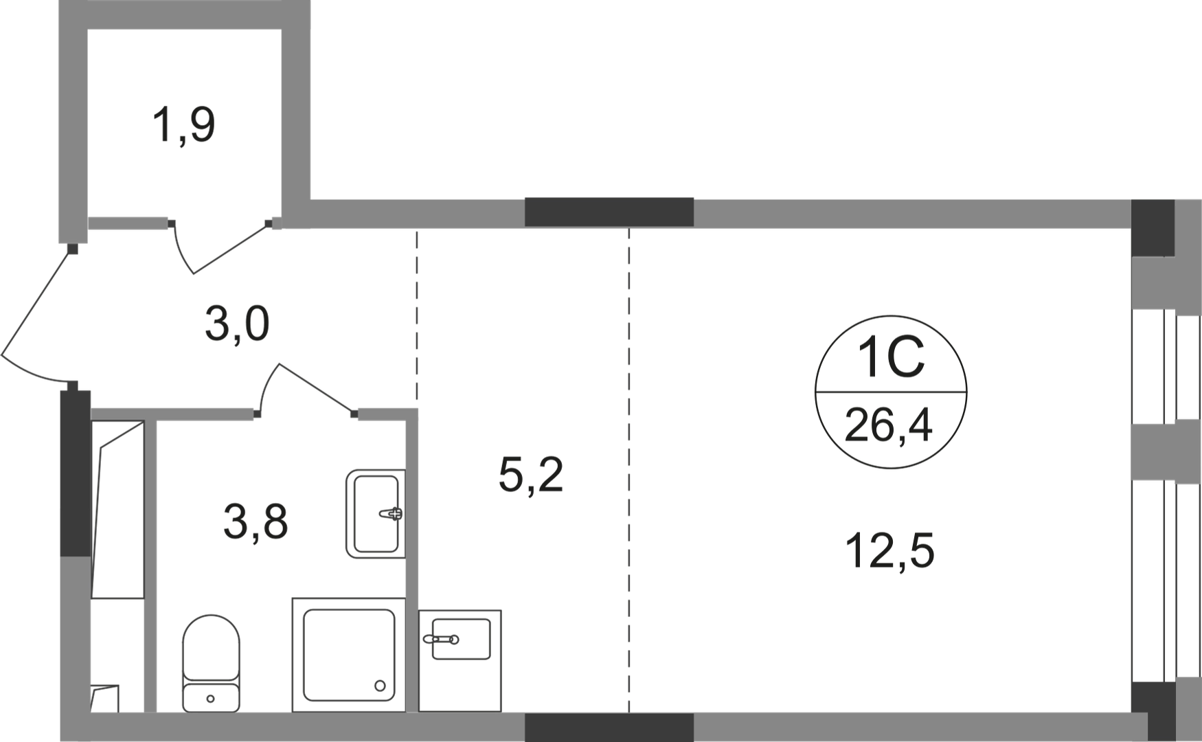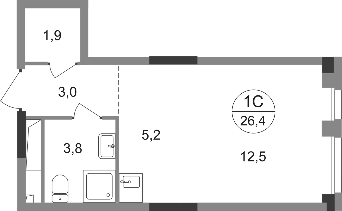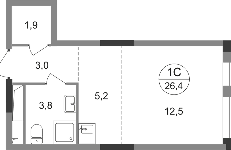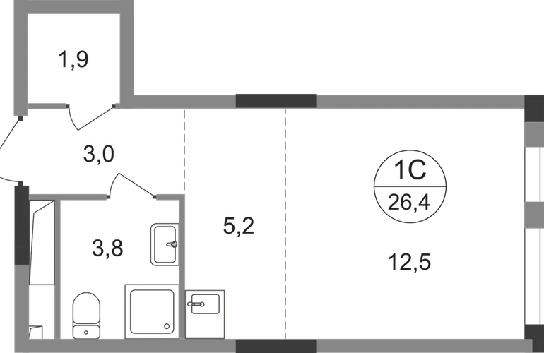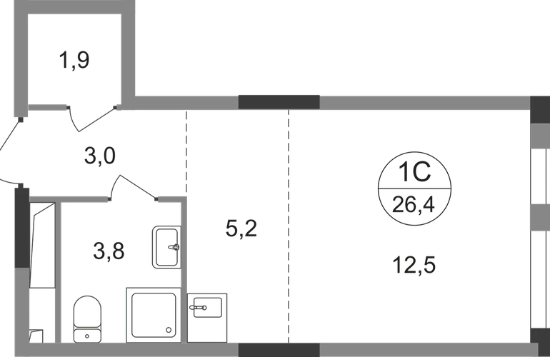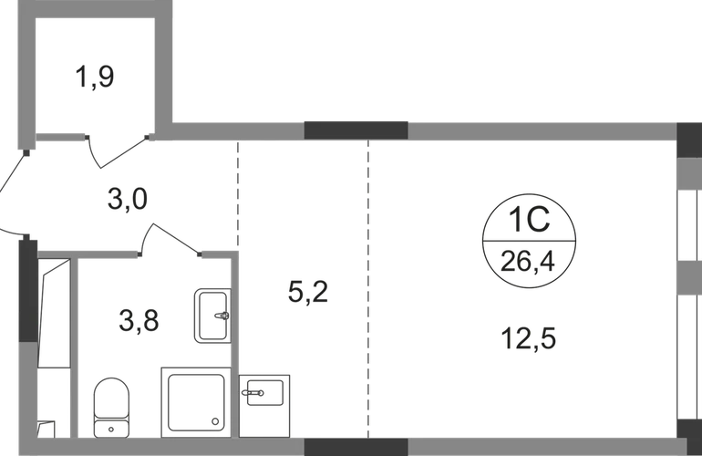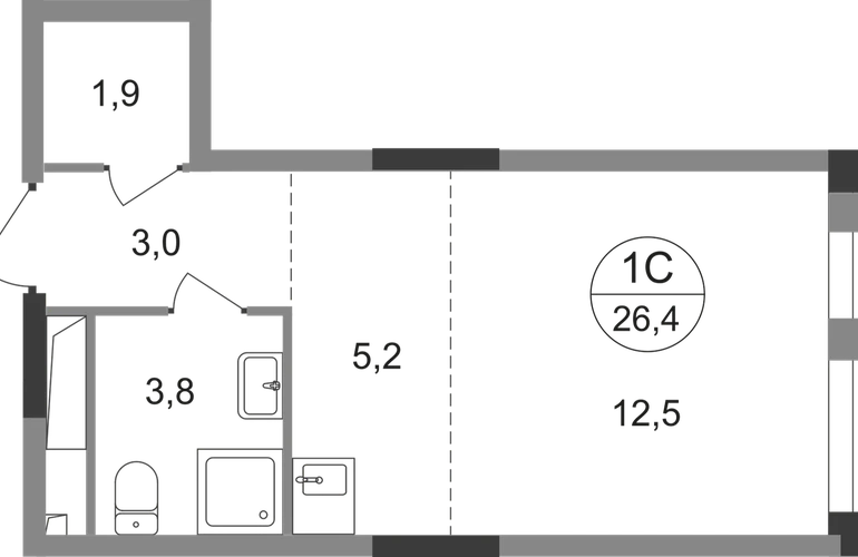 Продается квартира-студия без отделки в 9 фазе города-парка «Первый Московский». Общая площадь квартиры - 26,4 кв. м, этаж 14 из 19. Срок сдачи - 2 квартал 2027 года. Тип дома - монолитный. Цена указана при 100% оплате. Новый корпус состоит из 3 секций: Все квартиры с отделкой White Box с возможностью дополнительного выбора дизайнерской отделки: Classic или Smart+ Город-парк «Первый Московский» расположен всего в 7 км по Киевскому шоссе (Новая Москва). Из города-парка прямой выезд на Киевское шоссе и трассу Солнцево-Бутово-Варшавское шоссе. ТРАНСПОРТНАЯ ДОСТУПНОСТЬ: - 5 мин. на личном автомобиле или 10 мин. на автобусе №189, 147, 193 до станции метро «Филатов Луг» - 5 мин. на личном автомобиле или 12 мин. на автобусе №863 до станции метро «Саларьево» - 6 мин. на личном автомобиле или 15 мин. на автобусе №333 до станции метро «Рассказовка» РАЗВИТАЯ ИНФРАСТРУКТУРА В ОКРУЖЕНИИ: - общеобразовательная школа №2120 (корпуса д1, д7, ш1-ш5) - детский сад №2120 (корпуса д2, д9) - школа искусств - городская больница, детская поликлиника, филиал №5 - подстанция скорой помощи №58 и пожарно-спасательный центр №313 - отдел полиции, отдел ГИБДД - торговые центры «Столица» и «Новомосковский» - стадион, каток, бассейн - кафе, продуктовые магазины, аптеки, фитнес-центры, салоны красоты и пр. БЛАГОУСТРОЙСТВО: - дворы без машин - разнообразные детские площадки и развивающие комплексы - детские площадки разделены по возрастным группам - максимальная близость корпуса к парку «Филатов луг» - озеленение территории с учетом зонирования, островками для отдыха ОСОБЕННОСТИ АРХИТЕКТУРЫ: - безбарьерные входные группы - велопарковка на -1 этаже - колясочные в каждой входной группе - коммерческие помещения на 1 этаже в трех секциях - кладовые помещения расположены на жилых этажах и на -1 этаже - в каждой секции корпуса — 4 лифта: 2 пассажирских, 2 грузовых - видеонаблюдение установленное в холлах первых этажей, у подъездов и на прилегающей территории АВТОРСКИЙ ДИЗАЙН: Входные группы выполнены по авторскому дизайну, оснащены системой «тёплый пол». В каждой входной группе будет располагаться комфортабельная зона ожидания, почтовые ящики с ячейкой для спама, колясочная, акцентные пуфы и столик.О застройщике