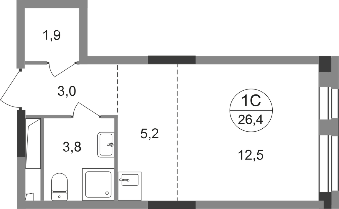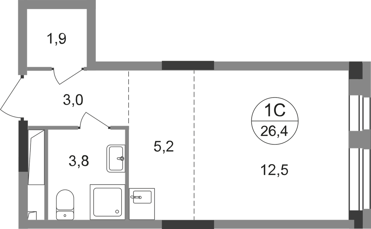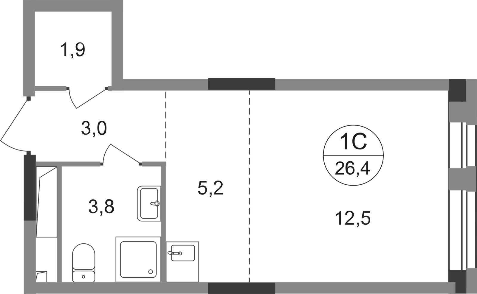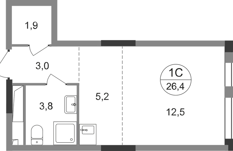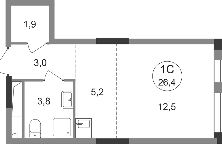 Продается квартира-студия без отделки в 9 фазе города-парка «Первый Московский». Общая площадь квартиры - 26,4 кв. м, этаж 16 из 19. Срок сдачи - 2 квартал 2027 года. Тип дома - монолитный. Цена указана при 100% оплате. Новый корпус состоит из 3 секций: Все квартиры с отделкой White Box с возможностью дополнительного выбора дизайнерской отделки: Classic или Smart+ Город-парк «Первый Московский» расположен всего в 7 км по Киевскому шоссе (Новая Москва). Из города-парка прямой выезд на Киевское шоссе и трассу Солнцево-Бутово-Варшавское шоссе. ТРАНСПОРТНАЯ ДОСТУПНОСТЬ: - 5 мин. на личном автомобиле или 10 мин. на автобусе №189, 147, 193 до станции метро «Филатов Луг» - 5 мин. на личном автомобиле или 12 мин. на автобусе №863 до станции метро «Саларьево» - 6 мин. на личном автомобиле или 15 мин. на автобусе №333 до станции метро «Рассказовка» РАЗВИТАЯ ИНФРАСТРУКТУРА В ОКРУЖЕНИИ: - общеобразовательная школа №2120 (корпуса д1, д7, ш1-ш5) - детский сад №2120 (корпуса д2, д9) - школа искусств - городская больница, детская поликлиника, филиал №5 - подстанция скорой помощи №58 и пожарно-спасательный центр №313 - отдел полиции, отдел ГИБДД - торговые центры «Столица» и «Новомосковский» - стадион, каток, бассейн - кафе, продуктовые магазины, аптеки, фитнес-центры, салоны красоты и пр. БЛАГОУСТРОЙСТВО: - дворы без машин - разнообразные детские площадки и развивающие комплексы - детские площадки разделены по возрастным группам - максимальная близость корпуса к парку «Филатов луг» - озеленение территории с учетом зонирования, островками для отдыха ОСОБЕННОСТИ АРХИТЕКТУРЫ: - безбарьерные входные группы - велопарковка на -1 этаже - колясочные в каждой входной группе - коммерческие помещения на 1 этаже в трех секциях - кладовые помещения расположены на жилых этажах и на -1 этаже - в каждой секции корпуса — 4 лифта: 2 пассажирских, 2 грузовых - видеонаблюдение установленное в холлах первых этажей, у подъездов и на прилегающей территории АВТОРСКИЙ ДИЗАЙН: Входные группы выполнены по авторскому дизайну, оснащены системой «тёплый пол». В каждой входной группе будет располагаться комфортабельная зона ожидания, почтовые ящики с ячейкой для спама, колясочная, акцентные пуфы и столик.О застройщике