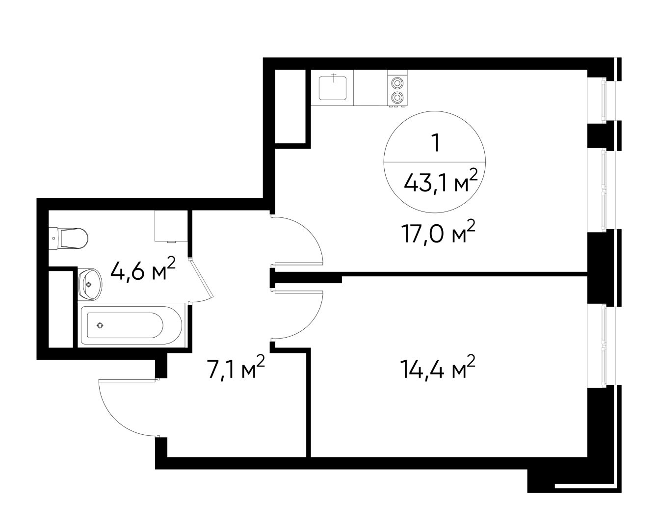 Продается однокомнатная квартира без отделки в 9 фазе города-парка "Первый Московский". Общая площадь квартиры - 43,1 кв. м, этаж 4 из 19. Срок сдачи - 4 квартал 2026 года. Тип дома - монолитный. Новый корпус состоит из 2х секций, без отделки. Город-парк "Первый Московский" расположен всего в 7 км по Киевскому шоссе (Новая Москва). Из города-парка прямой выезд на Киевское шоссе и трассу Солнцево-Бутово-Варшавское шоссе. ТРАНСПОРТНАЯ ДОСТУПНОСТЬ: - 5 мин. на личном автомобиле или 10 мин. на автобусе №189, 147, 193 до станции метро «Филатов Луг» - 5 мин. на личном автомобиле или 12 мин. на автобусе №863 до станции метро «Саларьево» - 6 мин. на личном автомобиле или 15 мин. на автобусе №333 до станции метро «Рассказовка» РАЗВИТАЯ ИНФРАСТРУКТУРА В ОКРУЖЕНИИ: - общеобразовательная школа №2120 корпуса д1, д7, ш1-ш5 - детский сад №2120 корпуса д2, д9 - школа искусств - городская больница, детская поликлиника, филиал №5 - подстанция скорой помощи №58 и пожарно-спасательный центр №313 - отдел полиции, отдел ГИБДД - торговые центры “Столица” и “Новомосковский” - стадион, каток, бассейн - кафе, продуктовые магазины, аптеки, фитнес центры, салоны красоты и пр. БЛАГОУСТРОЙСТВО: - детская площадка для малышей и детей до 12 лет - места отдыха для родителей в непосредственной близости - озеленение территории с учетом зонирования - максимальная близость корпуса к пару Филатов луг ОСОБЕННОСТИ АРХИТЕКТУРЫ: - безбарьерные входные группы - колясочные в каждой входной группе - коммерческие помещения на 1 этаже в двух секциях - кладовые помещения расположены на жилых этажах и на -1 этаже - в каждой секции корпуса по 3 лифта: 2 пассажирских, 1 грузовой - на фасадах предусмотрены корзины для установки внешних блоков кондиционеров - видеонаблюдение установленное в холлах первых этажей, у подъездов и прилегающей территории АВТОРСКИЙ ДИЗАЙН: Входные группы выполнены по авторскому дизайну, оснащены системой «тёплый пол». В каждой входной группе будет располагаться комфортабельная зона ожидания, почтовые ящики с ячейкой для спама, колясочная, акцентные пуфы и столик.О застройщике