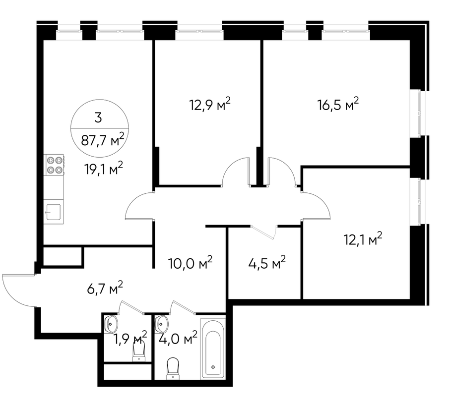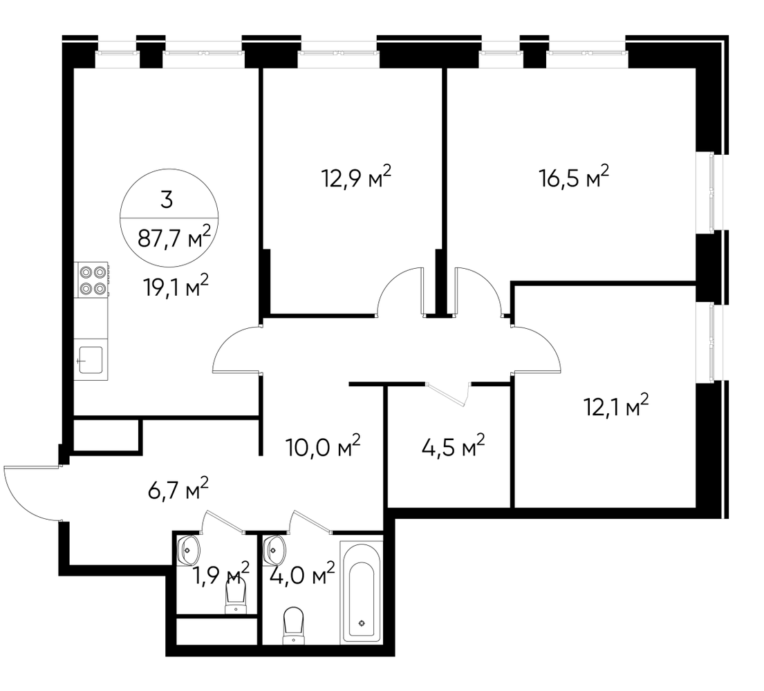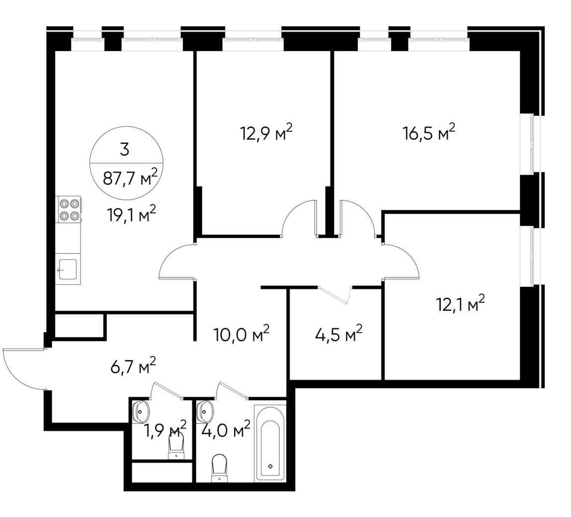 Продается трехкомнатная квартира без отделки в 9 фазе города-парка "Первый Московский". Общая площадь квартиры - 87,7 кв. м, этаж 18 из 19. Срок сдачи - 4 квартал 2026 года. Тип дома - монолитный. Цена указана при 100% оплате. Новый корпус состоит из 2х секций, без отделки. Город-парк "Первый Московский" расположен всего в 7 км по Киевскому шоссе (Новая Москва). Из города-парка прямой выезд на Киевское шоссе и трассу Солнцево-Бутово-Варшавское шоссе. ТРАНСПОРТНАЯ ДОСТУПНОСТЬ: - 5 мин. на личном автомобиле или 10 мин. на автобусе №189, 147, 193 до станции метро «Филатов Луг» - 5 мин. на личном автомобиле или 12 мин. на автобусе №863 до станции метро «Саларьево» - 6 мин. на личном автомобиле или 15 мин. на автобусе №333 до станции метро «Рассказовка» РАЗВИТАЯ ИНФРАСТРУКТУРА В ОКРУЖЕНИИ: - общеобразовательная школа №2120 корпуса д1, д7, ш1-ш5 - детский сад №2120 корпуса д2, д9 - школа искусств - городская больница, детская поликлиника, филиал №5 - подстанция скорой помощи №58 и пожарно-спасательный центр №313 - отдел полиции, отдел ГИБДД - торговые центры “Столица” и “Новомосковский” - стадион, каток, бассейн - кафе, продуктовые магазины, аптеки, фитнес центры, салоны красоты и пр. БЛАГОУСТРОЙСТВО: - детская площадка для малышей и детей до 12 лет - места отдыха для родителей в непосредственной близости - озеленение территории с учетом зонирования - максимальная близость корпуса к пару Филатов луг ОСОБЕННОСТИ АРХИТЕКТУРЫ: - безбарьерные входные группы - колясочные в каждой входной группе - коммерческие помещения на 1 этаже в двух секциях - кладовые помещения расположены на жилых этажах и на -1 этаже - в каждой секции корпуса по 3 лифта: 2 пассажирских, 1 грузовой - на фасадах предусмотрены корзины для установки внешних блоков кондиционеров - видеонаблюдение установленное в холлах первых этажей, у подъездов и прилегающей территории АВТОРСКИЙ ДИЗАЙН: Входные группы выполнены по авторскому дизайну, оснащены системой «тёплый пол». В каждой входной группе будет располагаться комфортабельная зона ожидания, почтовые ящики с ячейкой для спама, колясочная, акцентные пуфы и столик.О застройщике