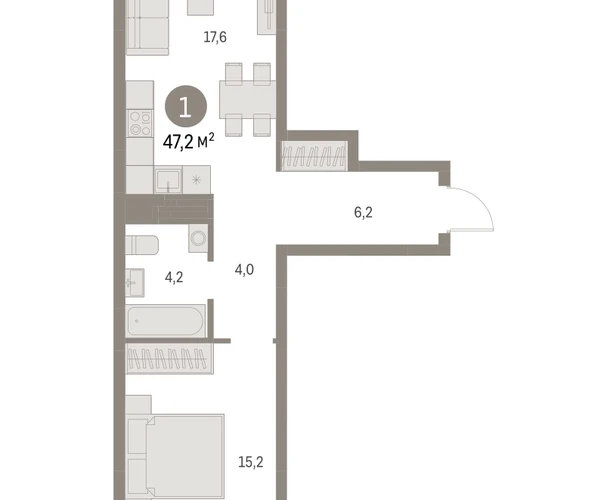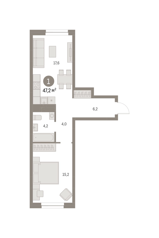 Квартира с кухней-гостиной и одной спальней в «Первом квартале». Особенности планировки: окна на две стороны, предчистовая отделка. ОБЪЯВЛЕНИЕ ОТ ЗАСТРОЙЩИКА. Покупка квартиры защищена банком. Квартиру можно купить онлайн. ЖК «Первый квартал» расположен в городе Видное Московской области. Это 6 домов переменной этажности от 5 до 14 этажей с закрытыми дворами без машин, детскими и спортивными площадками. Проект застройщика Брусника находится в Ленинском районе в 6 км от МКАД, рядом с Ермолинским парком и рекой Купелинка. До аэропорта Домодедово около получаса езды на автомобиле. В районе уже сформированная инфраструктура: четыре детских сада, две школы, торговые центры, продуктовые магазины, остановки общественного транспорта. Рядом с ЖК «Первый квартал» находится конечная остановка маршрутных такси. От неё можно добраться до четырех станций метро — «Домодедовская», «Аннино», «Красногвардейская», и железнодорожной станции «Расторгуево» (в будущем МЦД5). Отдельный выезд на М4 Дон. В жилом районе уже построен собственный детский сад. В 2024 году завершится строительство школы на 1650 учеников. Вблизи «Первого квартала» — два развитых жилых района: микрорайон «Купелинка», ЖК «Эко Видное», ЖК «Видный». 1-комнатная квартира в ЖК «Первый квартал» в Видном — это квартира с объединённой кухней-гостиной и отдельной спальней. Однокомнатная может быть укомплектована тёплой лоджией, где удобно разместить рабочее место. Есть варианты квартир с открытым французским балконом. В квартирах также спроектированы дополнительные помещения — гардеробные или ниши под хранение, постирочные. На сдаче в 1-комнатных квартирах в Видном выполнена отделка под чистовую отделку. Установлена надёжная сейф-дверь, пластиковые окна, приборы учёта, радиаторы, розетки и выключатели, выполнена разводка отопления и электрики. Стены оштукатурены и выровнены. Пол готов к финишному покрытию — ламинату, плитке, линолеуму. Купить однокомнатную квартиру в ЖК «Первый квартал» в Видном можно напрямую от застройщика «Брусника»: - бесплатный юридический сервис по оформлению квартиры от специалистов застройщика; - ипотека со сниженной ставкой по госпрограмме; - военная ипотека; - 1-комнатные квартиры в рассрочку без процентов от застройщика ЖК «Первый квартал» в 6 км от МКАД»; - обмен квартиры в Видном, Москве или Московской области на новую квартиру от застройщика «Брусника»; - квартиры ЖК «Первый квартал» в Видном сдаются с отделкой под чистовую; - выкупим квартиру с ипотекой в счет первого взноса за новую квартиру в «Первом квартале» от Брусники. Получить одобрение ипотеки или рассрочку, а также осуществить обмен квартиры можно онлайн. Запишитесь на онлайн презентацию по телефону или на сайте. № квартиры в нашей базе: ПК5-ГП5-5-5.2.6.О застройщике