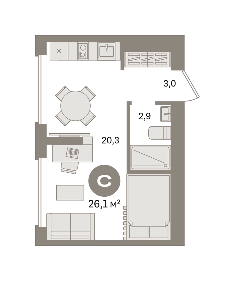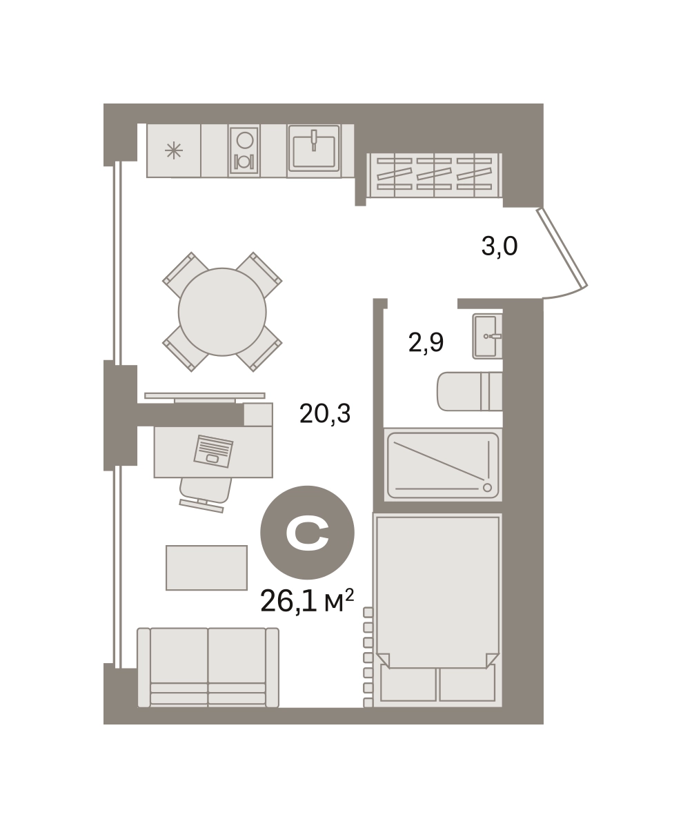 Студия в «Первом квартале». Особенности планировки: вид во двор, предчистовая отделка. № квартиры в нашей базе: МТК07-Ж1.6.1.О застройщике