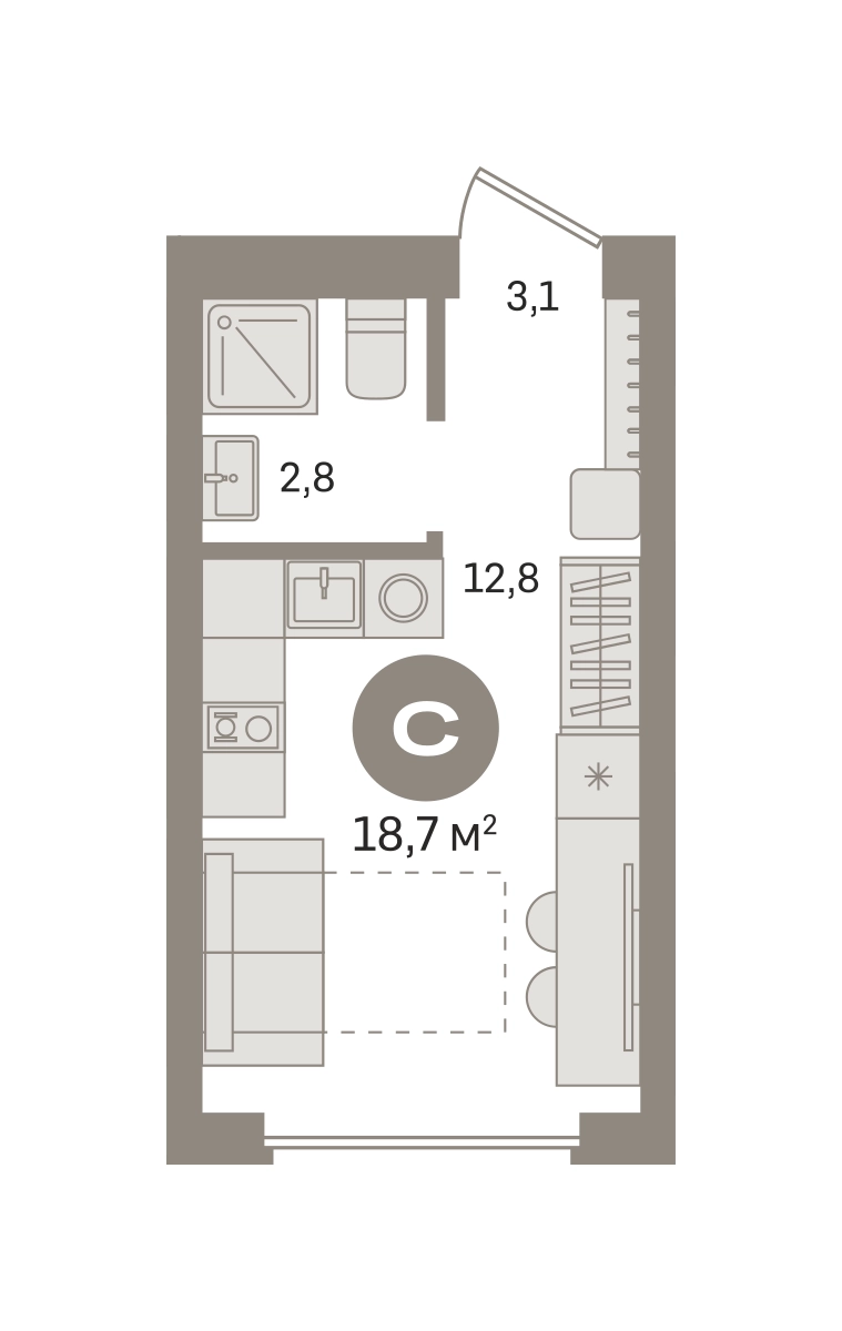 Студия в «Первом квартале». Особенности планировки: предчистовая отделка. № квартиры в нашей базе: МТК06-Ж3.2.3.О застройщике