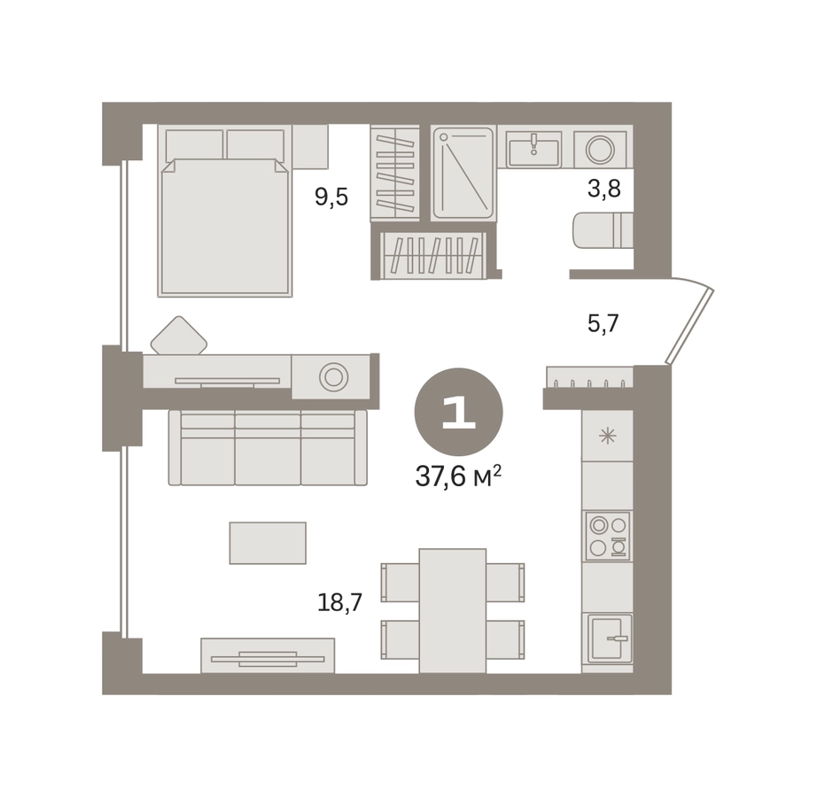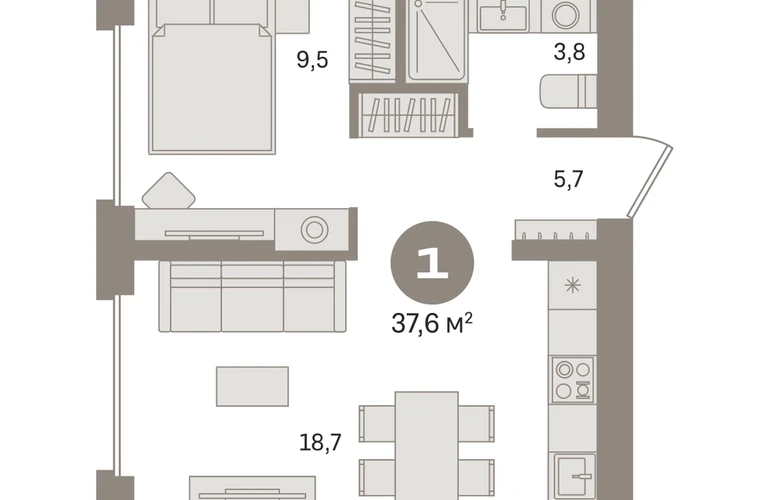 Квартира с кухней-гостиной и одной спальней в «Первом квартале». Особенности планировки: предчистовая отделка. № квартиры в нашей базе: МТК01-Ж1.3.4.О застройщике