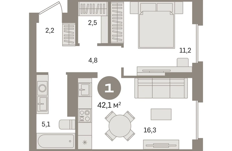 Продаётся с кладовой. Квартира с кухней-гостиной и одной спальней в «Первом квартале». Особенности планировки: гардеробная, вид во двор, предчистовая отделка. № квартиры в нашей базе: МТК01-Ж2.3.3.О застройщике
