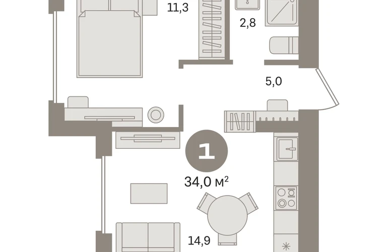 Квартира с кухней-гостиной и одной спальней в «Первом квартале». Особенности планировки: предчистовая отделка, мастер-спальня. № квартиры в нашей базе: МТК04-Ж2.6.4.О застройщике