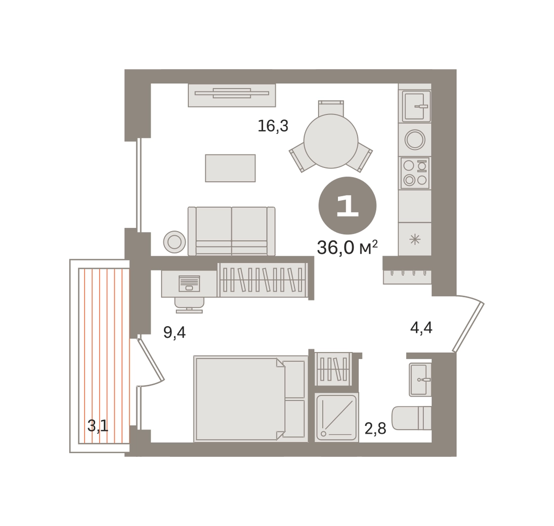 Продаётся с кладовой. Квартира с кухней-гостиной и одной спальней в «Первом квартале». Особенности планировки: вид во двор, предчистовая отделка, балкон. № квартиры в нашей базе: МТК01-Ж4.2.6.О застройщике