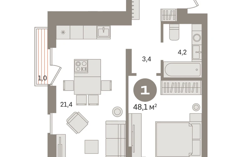 Продаётся с кладовой. Квартира с кухней-гостиной и одной спальней в «Первом квартале». Особенности планировки: французский балкон, вид во двор, предчистовая отделка. № квартиры в нашей базе: МТК04-Ж3.2.7.О застройщике