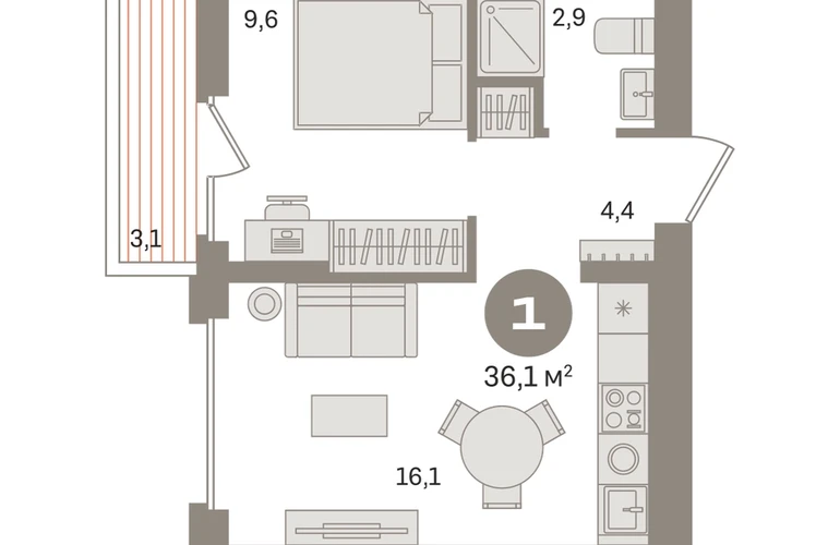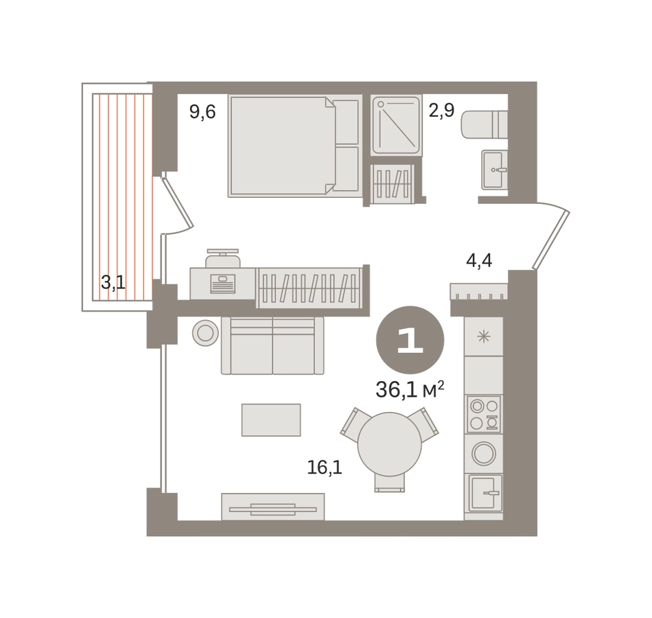 Продаётся с кладовой. Квартира с кухней-гостиной и одной спальней в «Первом квартале». Особенности планировки: вид во двор, предчистовая отделка, балкон. № квартиры в нашей базе: МТК01-Ж5.7.7.О застройщике