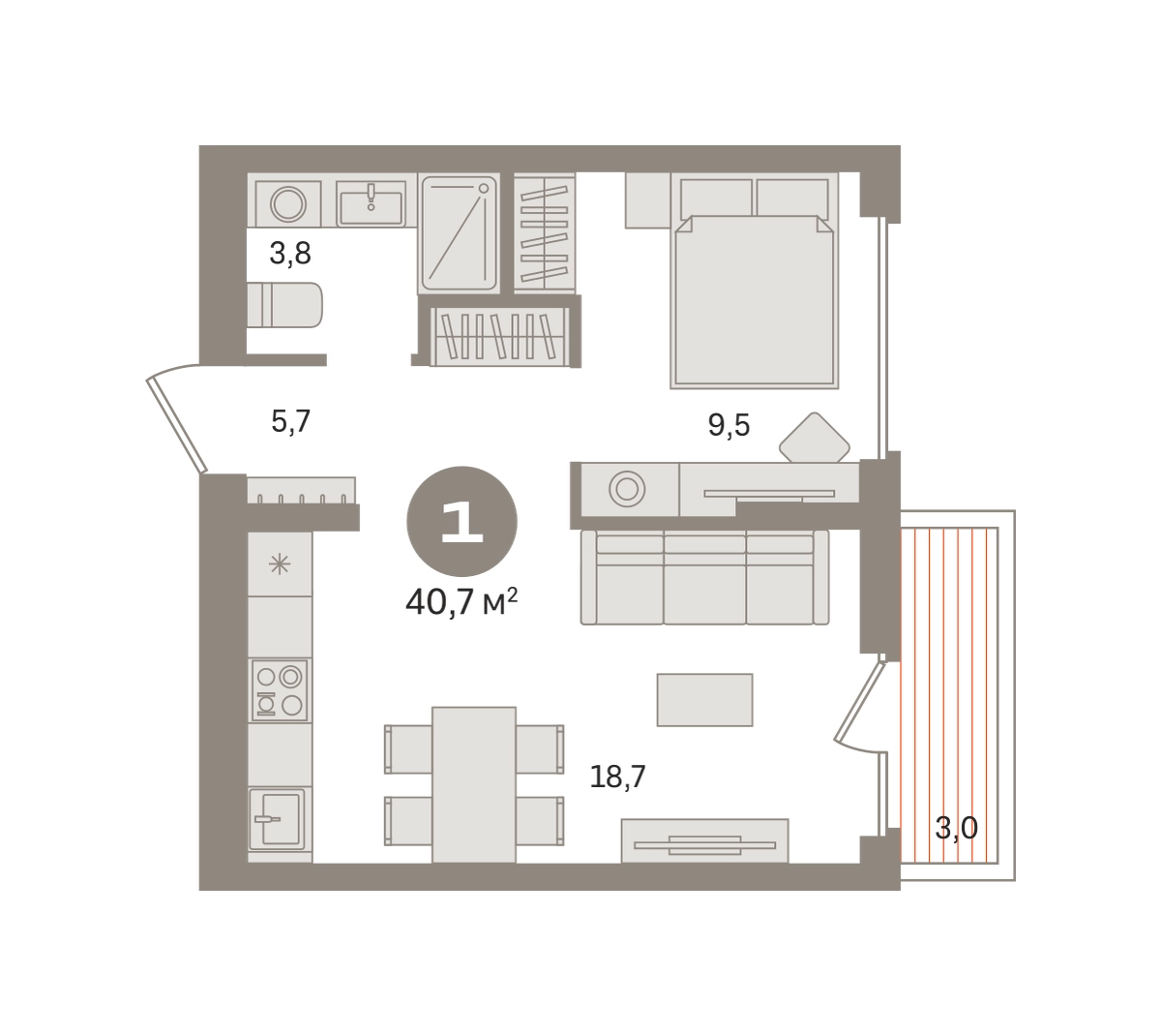 Продаётся с кладовой. Квартира с кухней-гостиной и одной спальней в «Первом квартале». Особенности планировки: предчистовая отделка, балкон. № квартиры в нашей базе: МТК05-Ж2.2.6.О застройщике