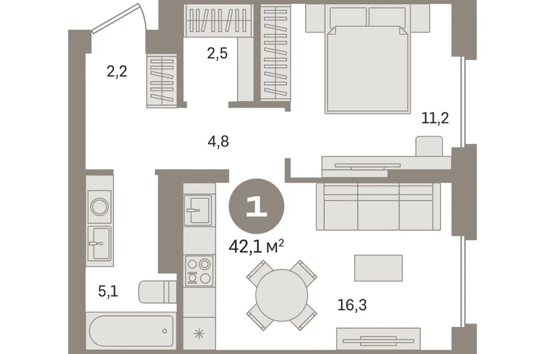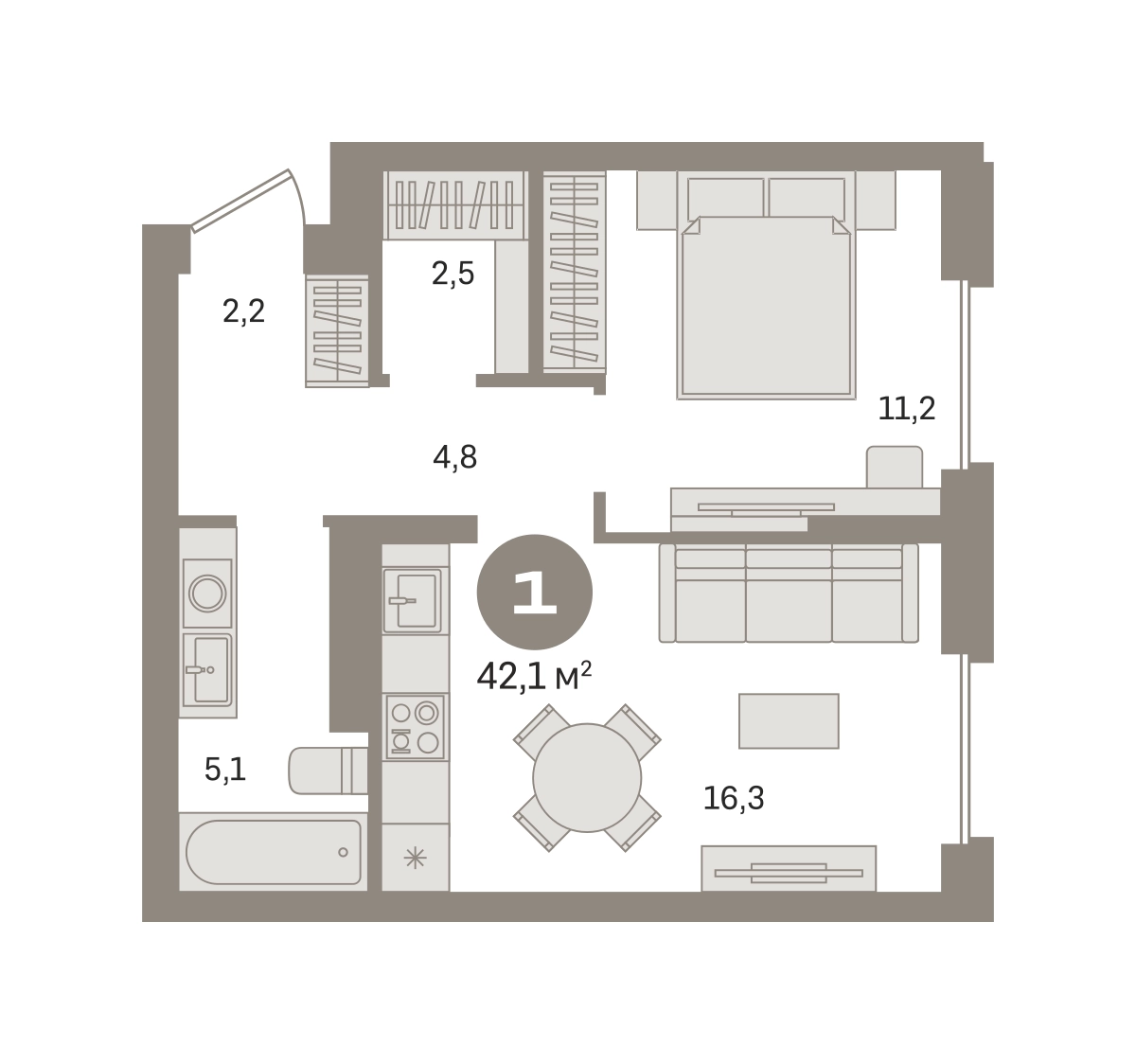 Продаётся с кладовой. Квартира с кухней-гостиной и одной спальней в «Первом квартале». Особенности планировки: гардеробная, вид во двор, предчистовая отделка. № квартиры в нашей базе: МТК01-Ж2.2.3.О застройщике