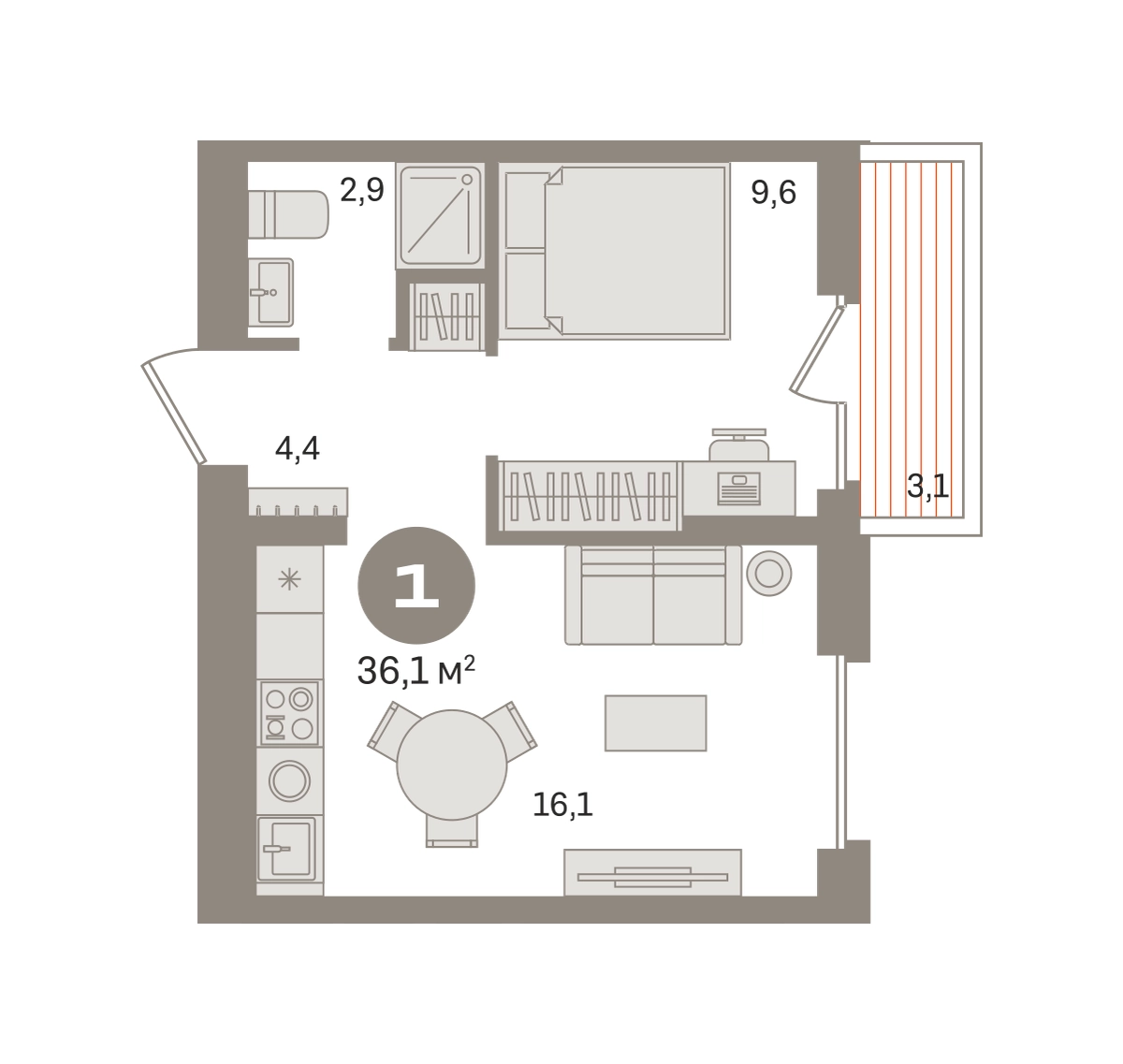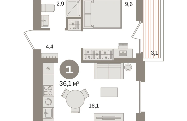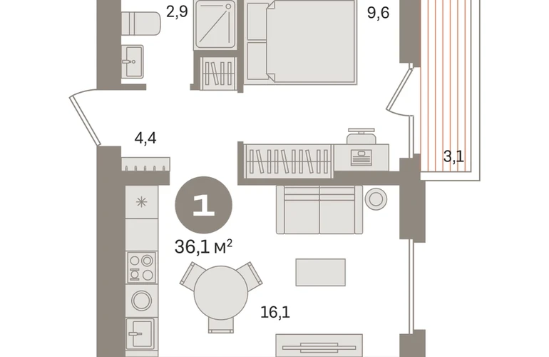 Продаётся с кладовой. Квартира с кухней-гостиной и одной спальней в «Первом квартале». Особенности планировки: вид во двор, предчистовая отделка, балкон. № квартиры в нашей базе: МТК01-Ж1.4.1.О застройщике