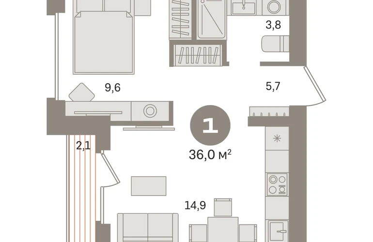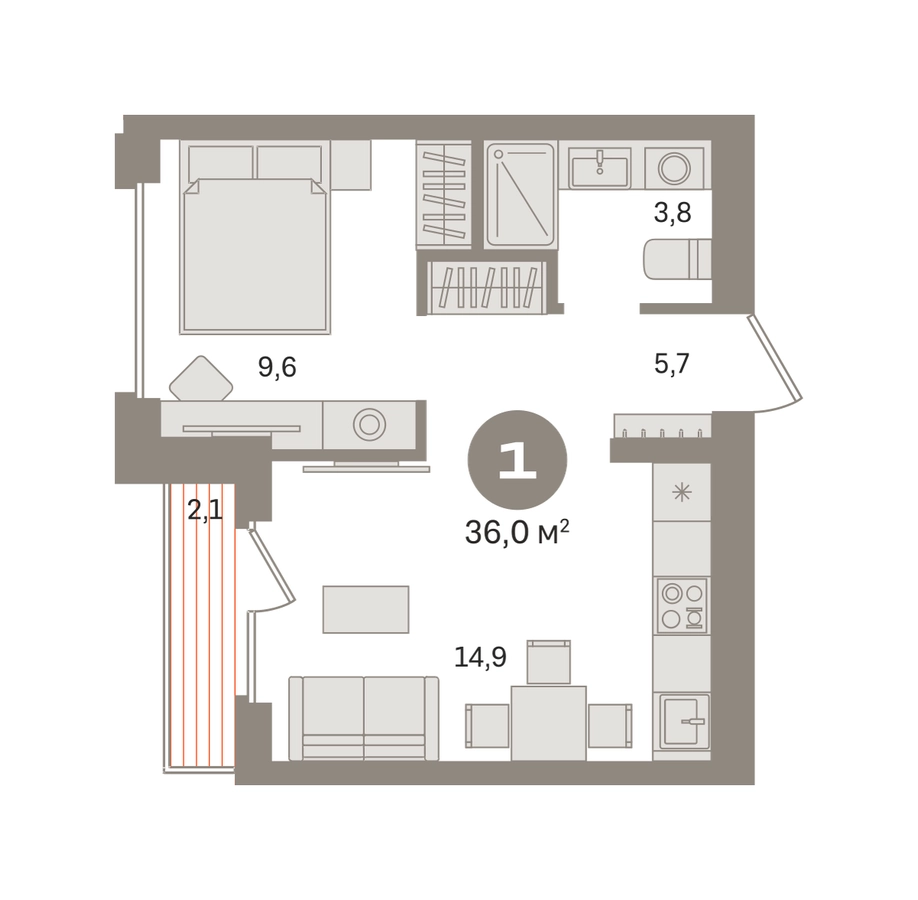 Продаётся с кладовой. Квартира с кухней-гостиной и одной спальней в «Первом квартале». Особенности планировки: предчистовая отделка, терраса. № квартиры в нашей базе: МТК01-Ж2.4.6.О застройщике