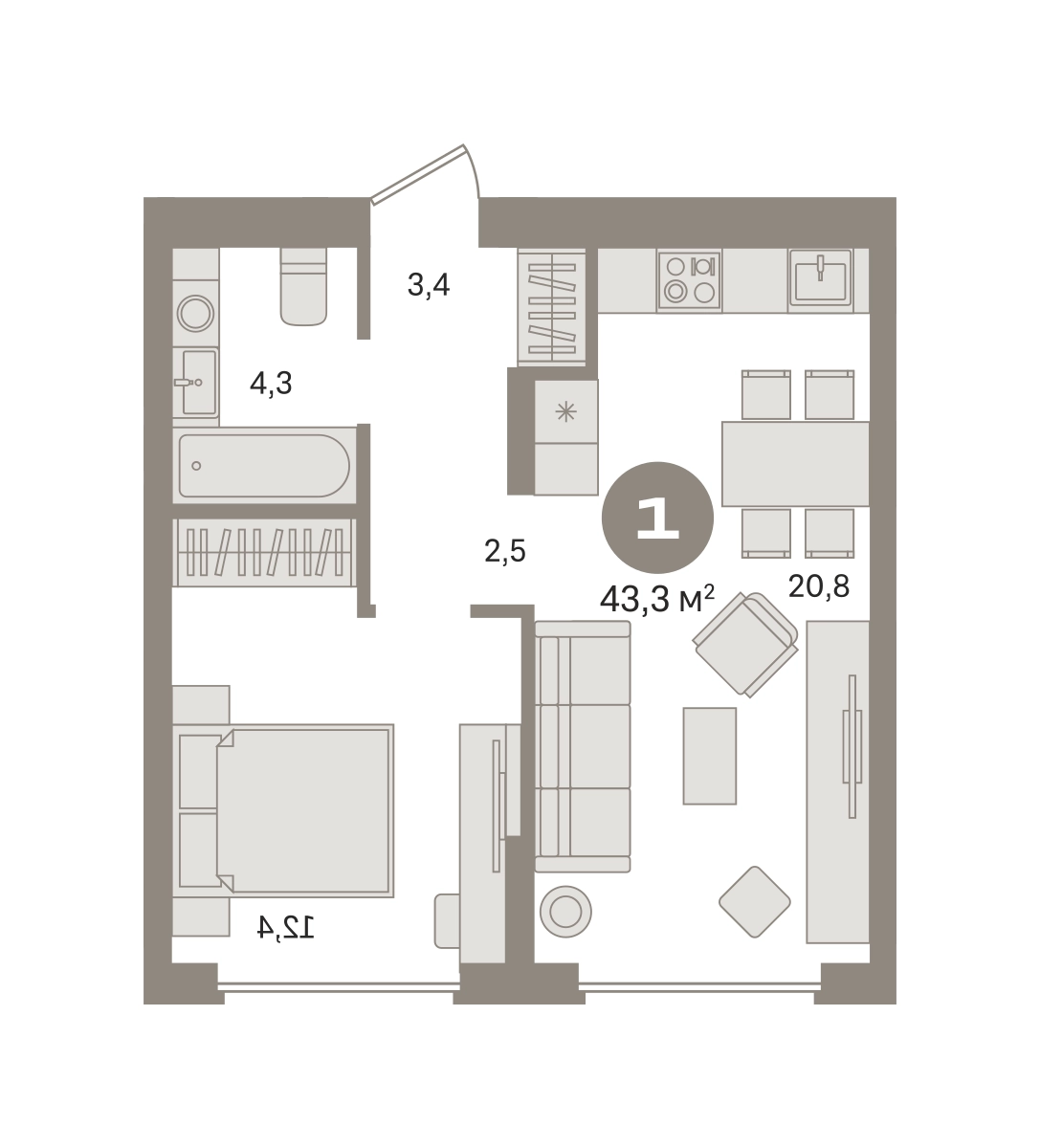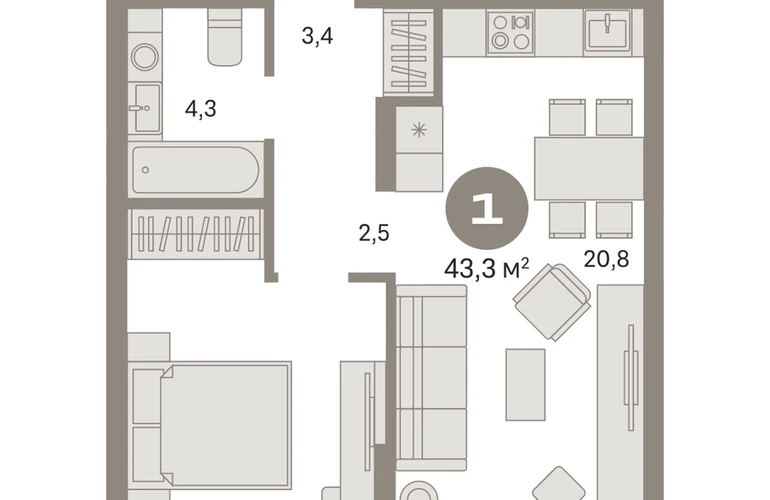 Квартира с кухней-гостиной и одной спальней в «Первом квартале». Особенности планировки: предчистовая отделка. № квартиры в нашей базе: МТК04-Ж4.7.4.О застройщике