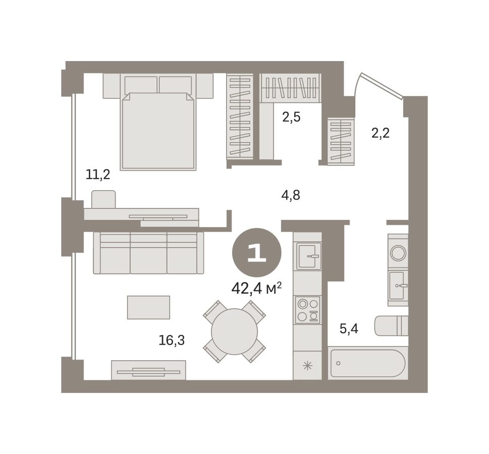 Продаётся с кладовой. Квартира с кухней-гостиной и одной спальней в «Первом квартале». Особенности планировки: гардеробная, вид во двор, предчистовая отделка. № квартиры в нашей базе: МТК01-Ж4.5.7.О застройщике
