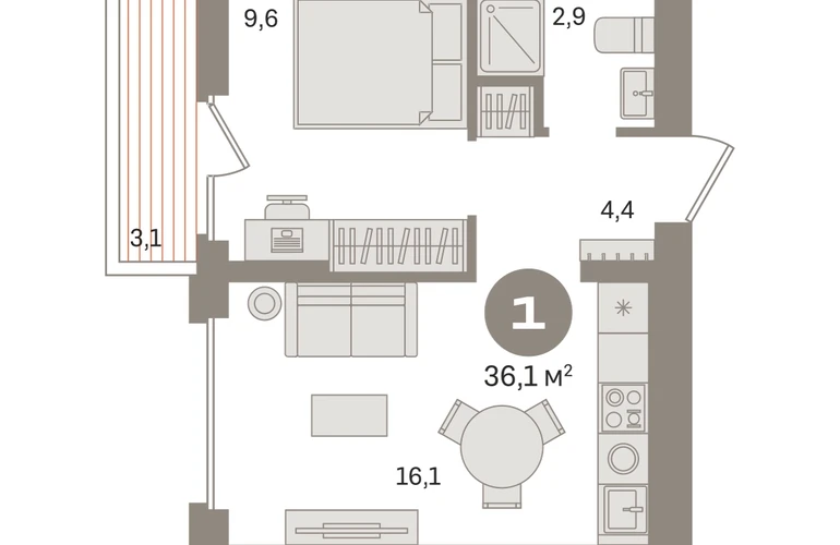 Продаётся с кладовой. Квартира с кухней-гостиной и одной спальней в «Первом квартале». Особенности планировки: вид во двор, предчистовая отделка, балкон. № квартиры в нашей базе: МТК01-Ж5.4.7.О застройщике