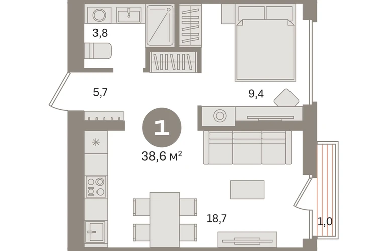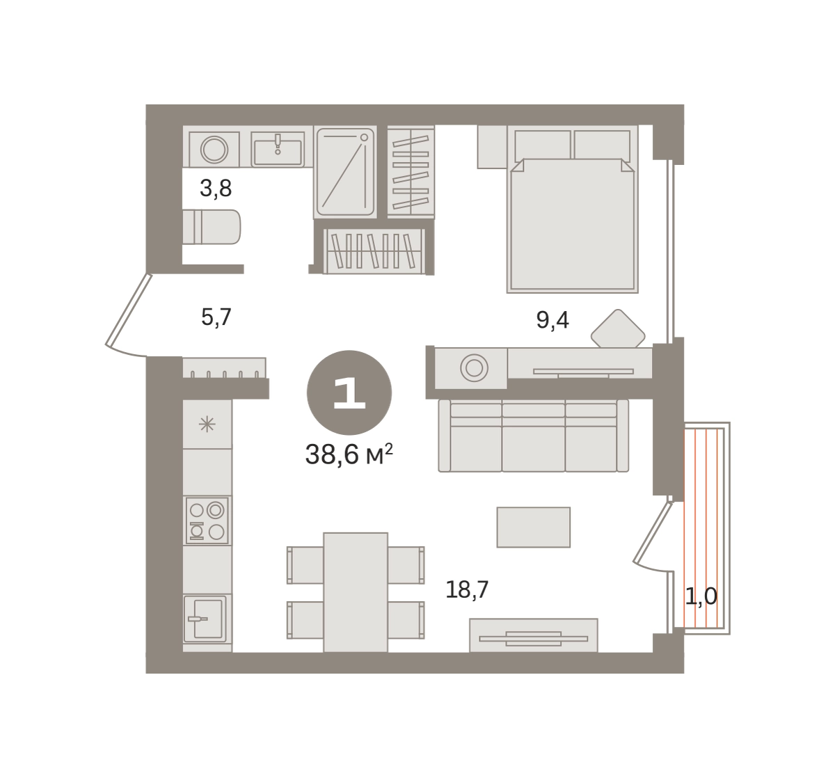 Продаётся с кладовой. Квартира с кухней-гостиной и одной спальней в «Первом квартале». Особенности планировки: французский балкон, предчистовая отделка. № квартиры в нашей базе: МТК05-Ж2.6.5.О застройщике