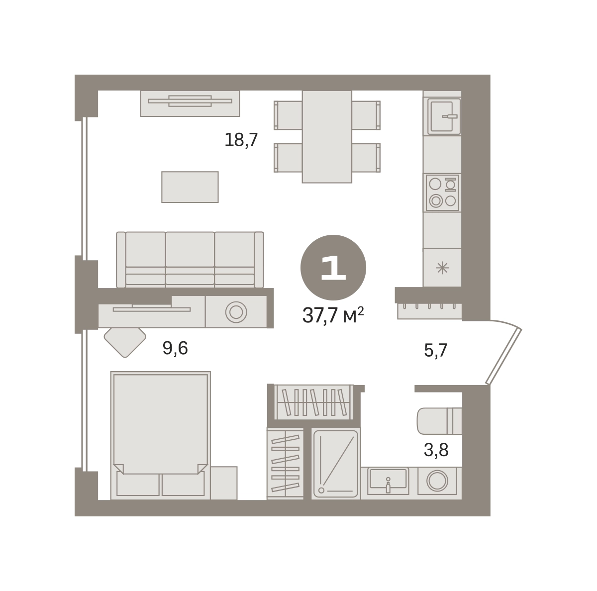Продаётся с кладовой. Квартира с кухней-гостиной и одной спальней в «Первом квартале». Особенности планировки: предчистовая отделка. № квартиры в нашей базе: МТК05-Ж4.3.3.О застройщике