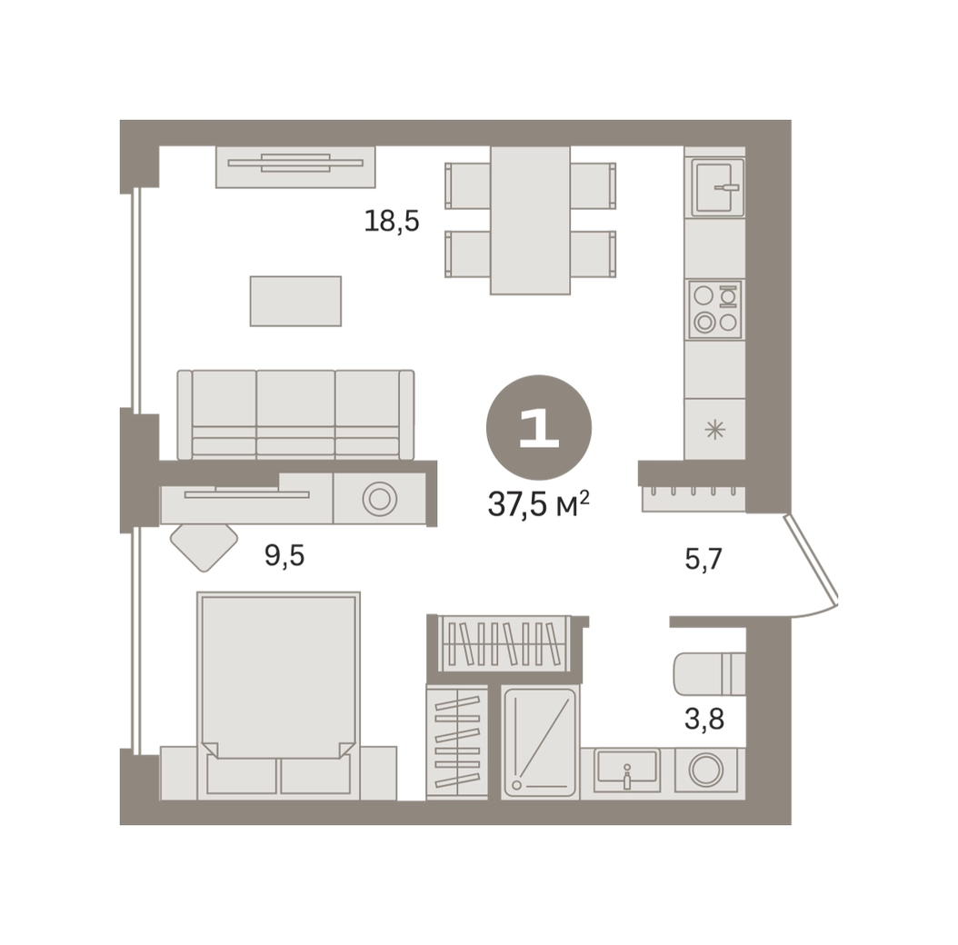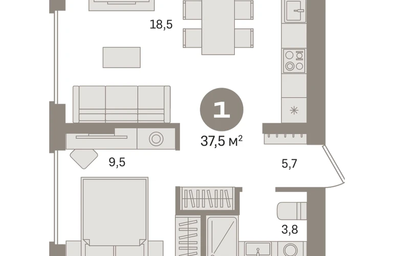 Продаётся с кладовой. Квартира с кухней-гостиной и одной спальней в «Первом квартале». Особенности планировки: предчистовая отделка. № квартиры в нашей базе: МТК04-Ж2.6.5.О застройщике