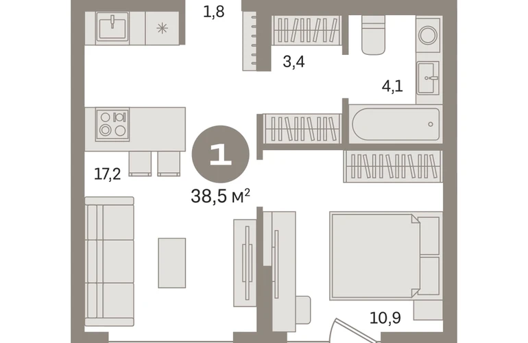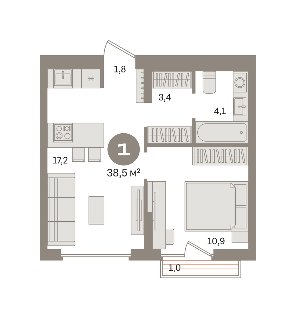 Продаётся с кладовой. Квартира с кухней-гостиной и одной спальней в «Первом квартале». Особенности планировки: французский балкон, предчистовая отделка. № квартиры в нашей базе: МТК05-Ж3.5.2.О застройщике