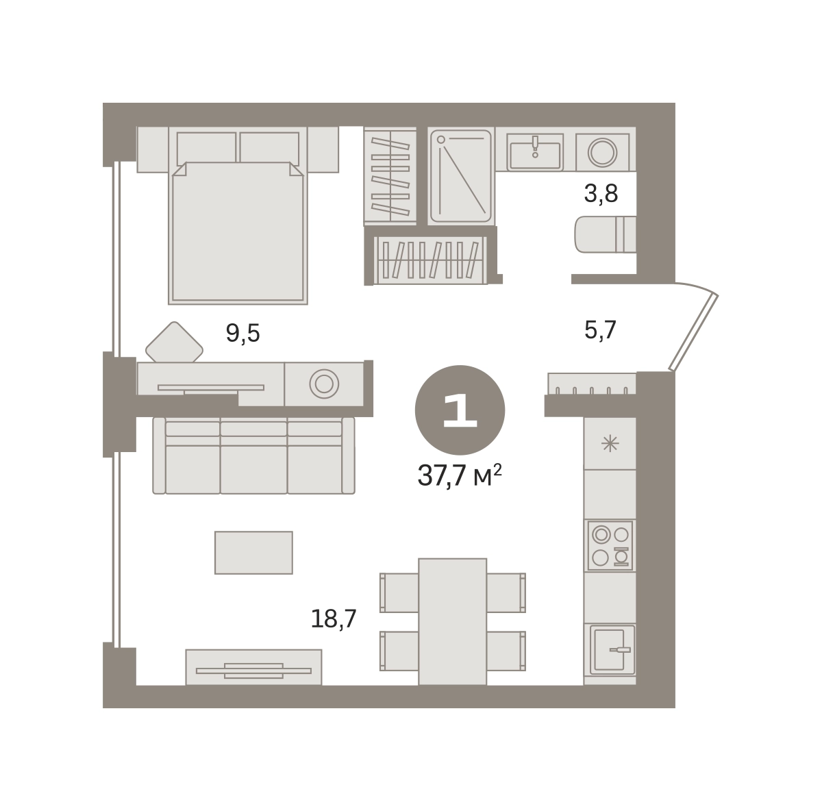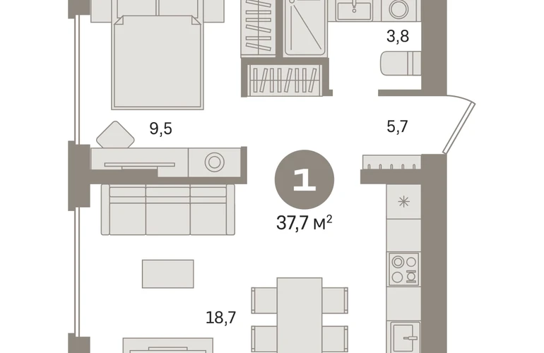 Продаётся с кладовой. Квартира с кухней-гостиной и одной спальней в «Первом квартале». Особенности планировки: предчистовая отделка, мастер-спальня. № квартиры в нашей базе: МТК04-Ж1.3.4.О застройщике