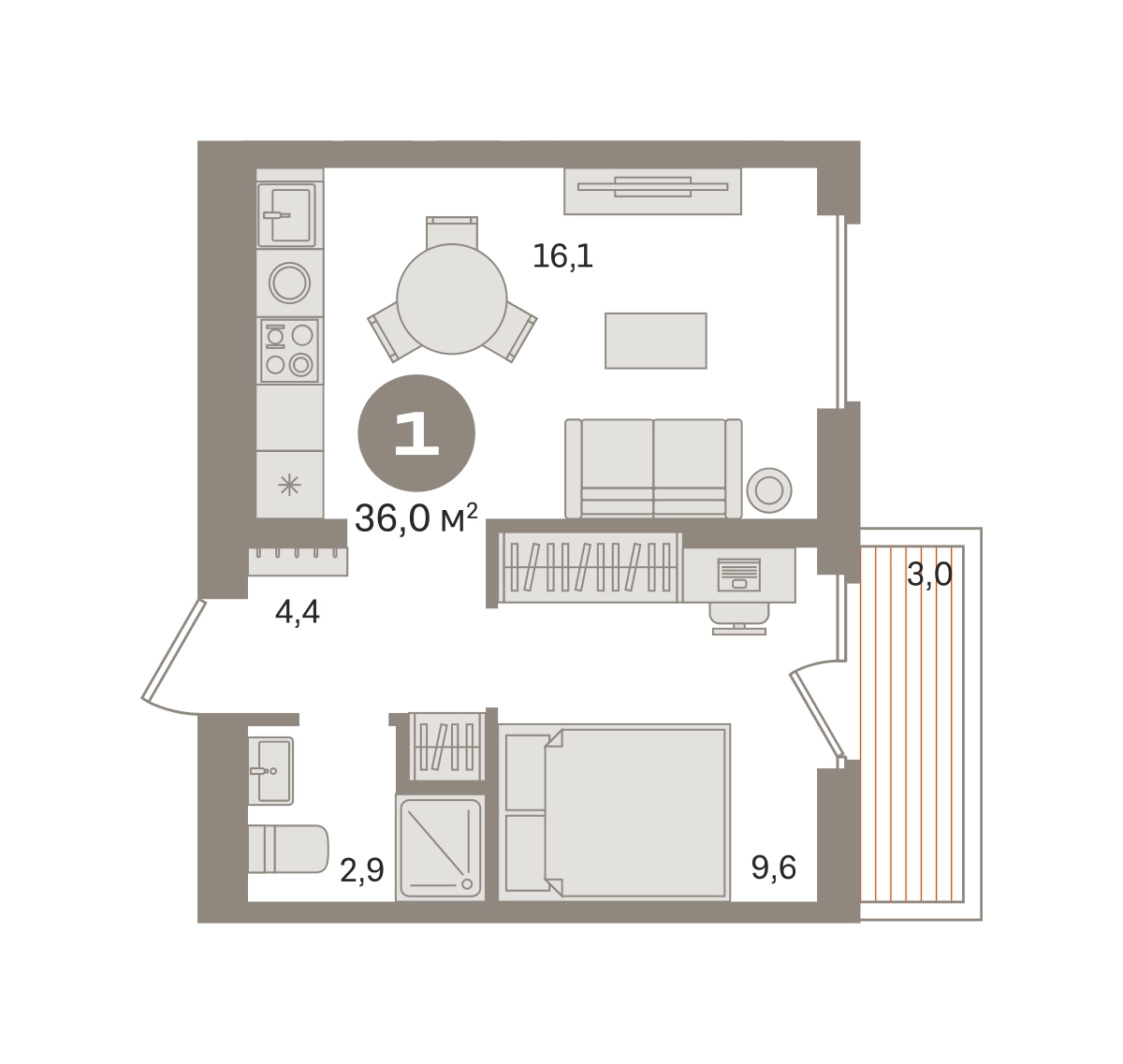 Продаётся с кладовой. Квартира с кухней-гостиной и одной спальней в «Первом квартале». Особенности планировки: вид во двор, предчистовая отделка, балкон. № квартиры в нашей базе: МТК05-Ж5.4.6.О застройщике
