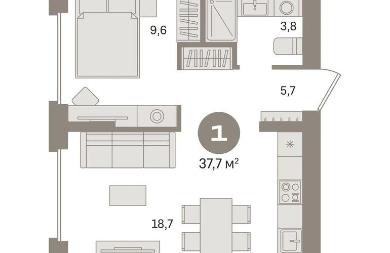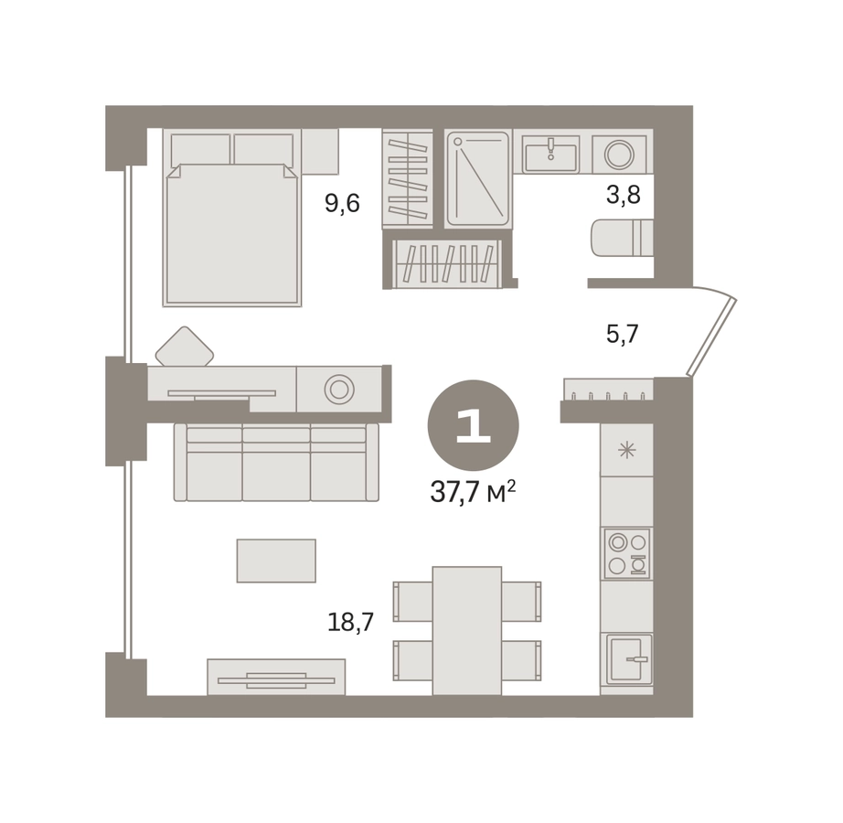 Продаётся с кладовой. Квартира с кухней-гостиной и одной спальней в «Первом квартале». Особенности планировки: предчистовая отделка. № квартиры в нашей базе: МТК01-Ж1.2.4.О застройщике