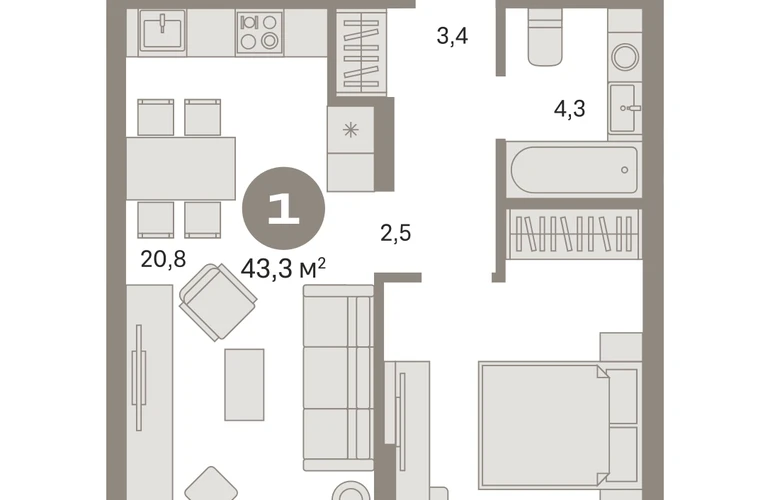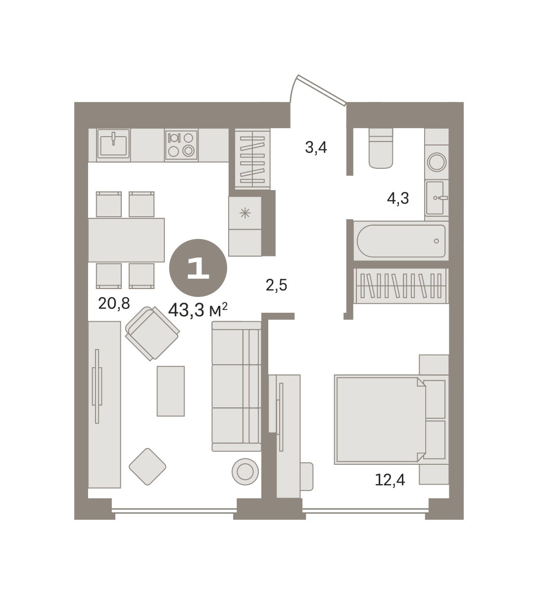 Продаётся с кладовой. Квартира с кухней-гостиной и одной спальней в «Первом квартале». Особенности планировки: предчистовая отделка. № квартиры в нашей базе: МТК04-Ж4.7.3.О застройщике