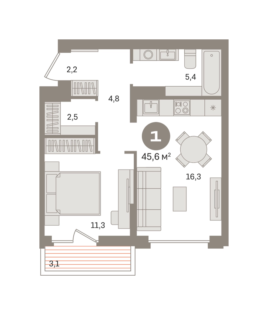 Продаётся с кладовой. Квартира с кухней-гостиной и одной спальней в «Первом квартале». Особенности планировки: гардеробная, вид во двор, предчистовая отделка, балкон. № квартиры в нашей базе: МТК01-Ж3.5.4.О застройщике