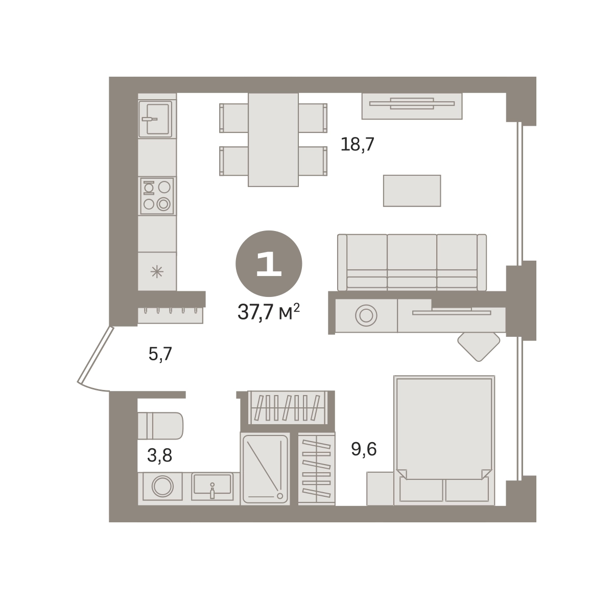 Продаётся с кладовой. Квартира с кухней-гостиной и одной спальней в «Первом квартале». Особенности планировки: предчистовая отделка. № квартиры в нашей базе: МТК01-Ж5.2.3.О застройщике