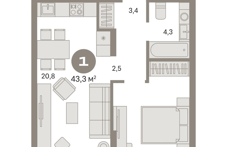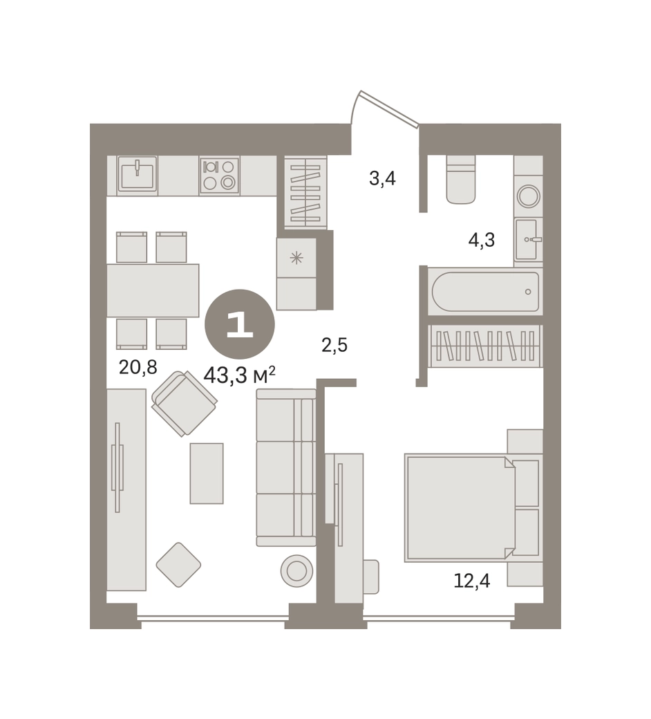 Квартира с кухней-гостиной и одной спальней в «Первом квартале». Особенности планировки: вид во двор, предчистовая отделка. № квартиры в нашей базе: МТК04-Ж3.7.3.О застройщике