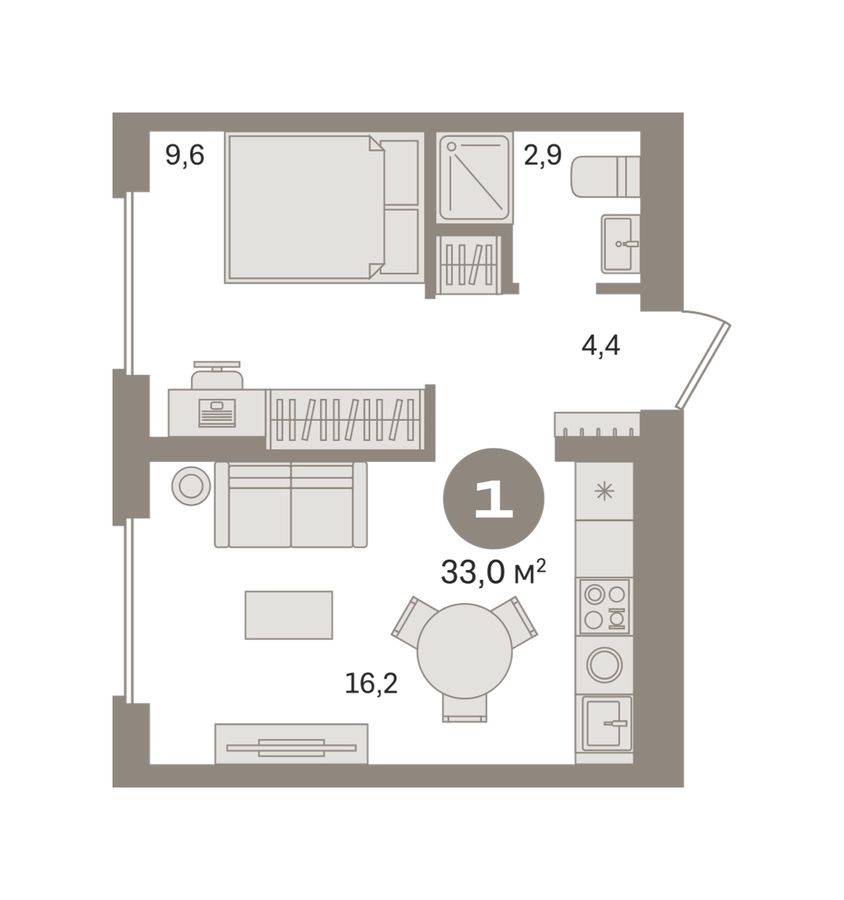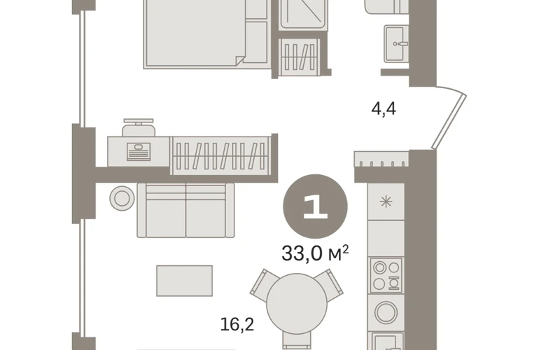 Продаётся с кладовой. Квартира с кухней-гостиной и одной спальней в «Первом квартале». Особенности планировки: вид во двор, предчистовая отделка. № квартиры в нашей базе: МТК05-Ж1.8.4.О застройщике