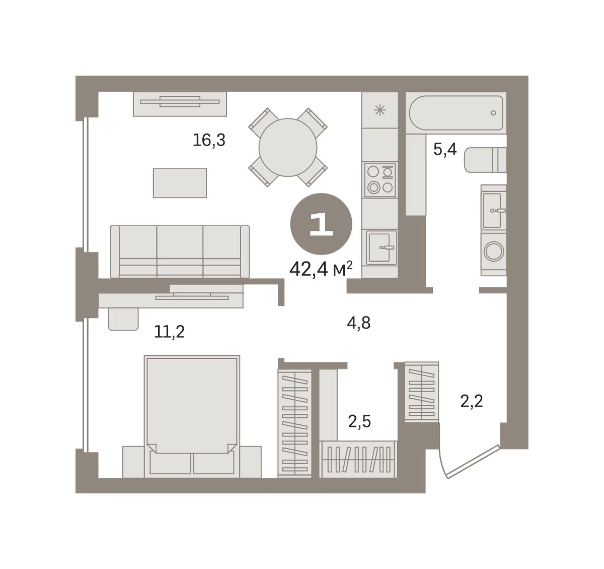 Продаётся с кладовой. Квартира с кухней-гостиной и одной спальней в «Первом квартале». Особенности планировки: гардеробная, вид во двор, предчистовая отделка. № квартиры в нашей базе: МТК05-Ж2.6.3.О застройщике