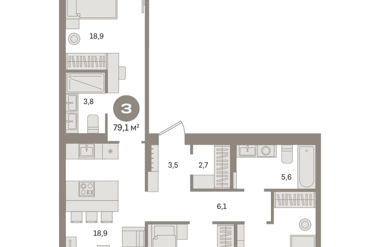 Продаётся с кладовой. Квартира с кухней-гостиной и тремя спальнями в «Первом квартале». Особенности планировки: окна на две стороны, второй санузел, гардеробная, вид во двор, разнесённые спальни, предчистовая отделка, мастер-спальня. № квартиры в нашей базе: МТК06-Ж2.8.4.О застройщике