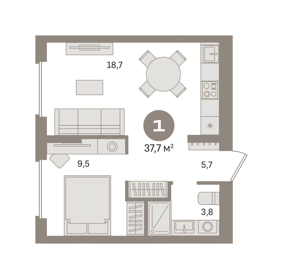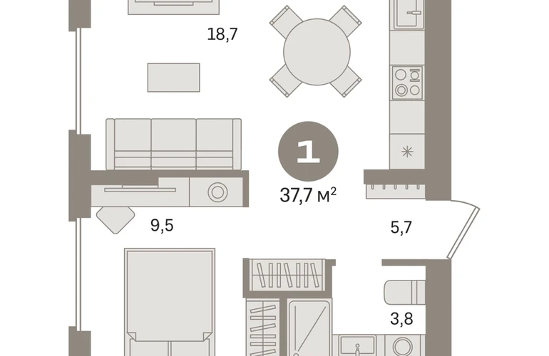 Квартира с кухней-гостиной и одной спальней в «Первом квартале». Особенности планировки: предчистовая отделка. № квартиры в нашей базе: МТК06-Ж5.8.4.О застройщике