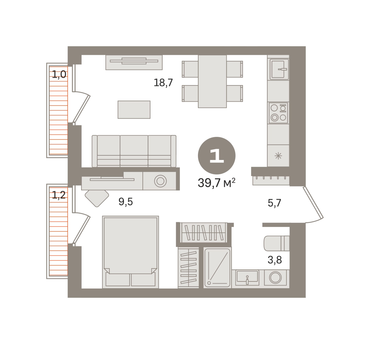 Продаётся с кладовой. Квартира с кухней-гостиной и одной спальней в «Первом квартале». Особенности планировки: французский балкон, предчистовая отделка. № квартиры в нашей базе: МТК06-Ж5.7.6.О застройщике