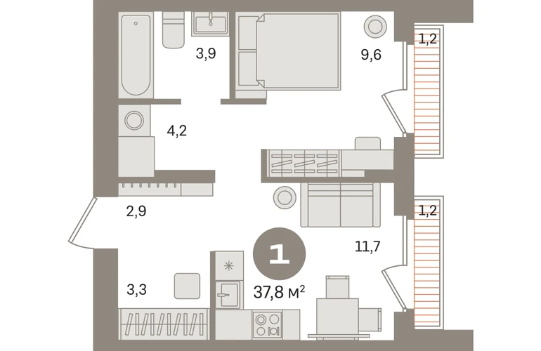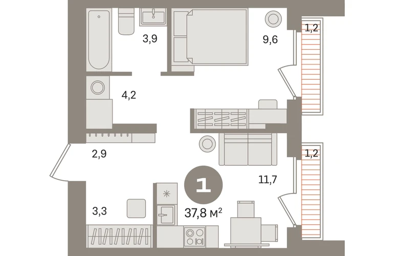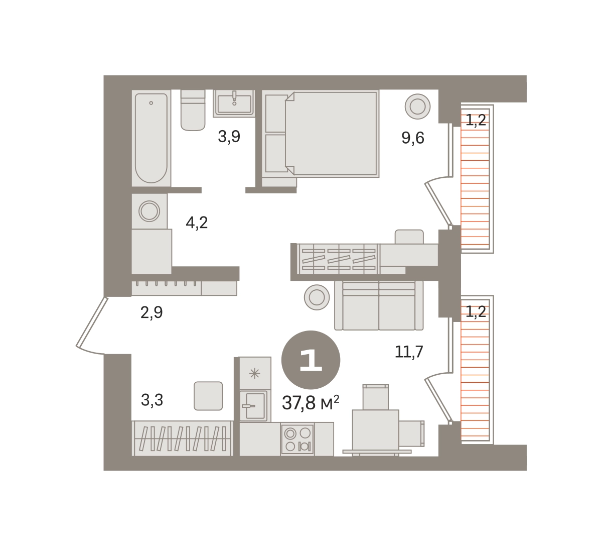 Квартира с кухней-гостиной и одной спальней в «Первом квартале». Особенности планировки: гардеробная, предчистовая отделка, постирочная, балкон. № квартиры в нашей базе: МТК06-Ж1.15.3.О застройщике