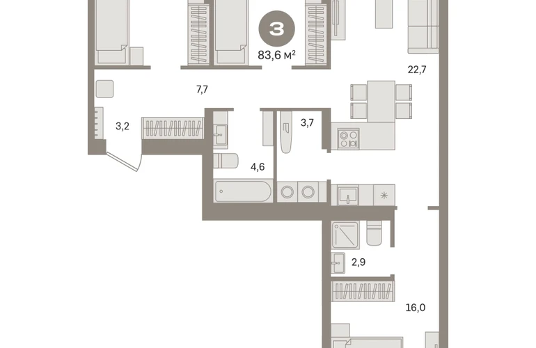 Квартира с кухней-гостиной и тремя спальнями в «Первом квартале». Особенности планировки: окна на две стороны, второй санузел, вид во двор, разнесённые спальни, предчистовая отделка, мастер-спальня, постирочная, балкон. № квартиры в нашей базе: МТК06-Ж3.5.1.О застройщике