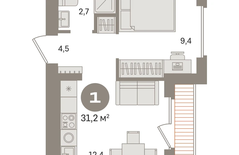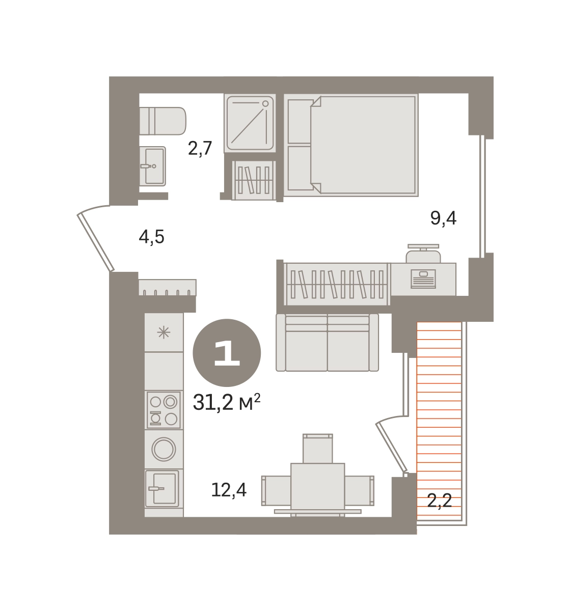 Продаётся с кладовой. Квартира с кухней-гостиной и одной спальней в «Первом квартале». Особенности планировки: вид во двор, предчистовая отделка, терраса. № квартиры в нашей базе: МТК06-Ж5.8.2.О застройщике