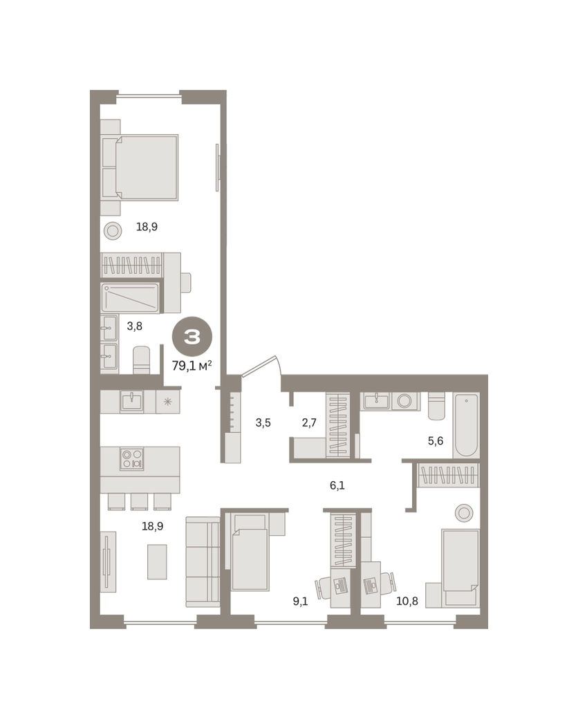 Продаётся с кладовой. Квартира с кухней-гостиной и тремя спальнями в «Первом квартале». Особенности планировки: окна на две стороны, второй санузел, гардеробная, вид во двор, разнесённые спальни, предчистовая отделка, мастер-спальня. № квартиры в нашей базе: МТК06-Ж2.9.4.О застройщике